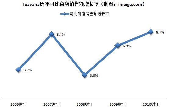 2008财年,受宏观经济影响,Teavana可比商店(运营时间超过15个月)销售额增长率降至3%,此后逐渐增长,2010财年增长率增至8.7%。