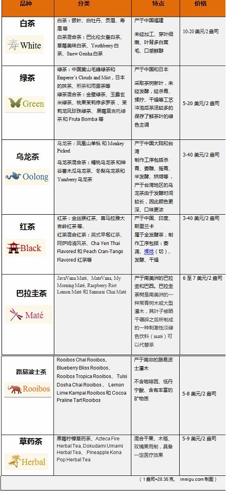 目前该公司出售的茶叶超过100多个品种,涉及白茶、红茶、绿茶、乌龙茶、巴拉圭茶、路易波士茶和草药茶以及他们的混合茶,其中混合茶占据8成份额。不同品种的价格差异较大。