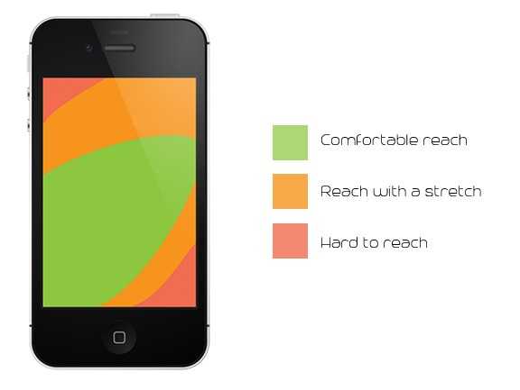 可能你已经很熟悉这张拇指热区图,它描绘了人们持握智能手机的方式,将屏幕上难以触及的区域视觉化了。