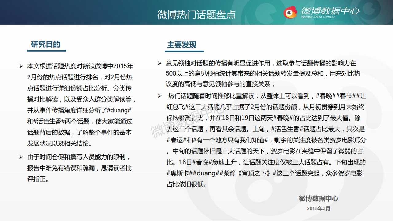 微博:2015年2月微博热门话题分析 更多阅读:微博“头部作者”收入超2亿 资源将向长文和视频倾斜阿里旅行与微博达成战略合作 打造国内最大旅游生态平台微博与社交媒体分析公司Socialbakers达成合作微软:让一条微博显得可信的原因新浪微博&克劳锐:2024微博美妆营销价值白皮书你的个人隐私是如何在微博上泄露的Twitter:2Q19日活用户加速增至1.39亿人数据解读微博导师Twitter为何被微博学生给超了大数据驱动下的微博社会化推荐2015年3月电商网站微博发展报告2015年3月微博旅游行业发展报告微博:2014年Q4智能手机微报告CIC:关于微博及微信的深度研究2014年电子商务网站微博发展报告日本AV女优的微博大数据–信息图