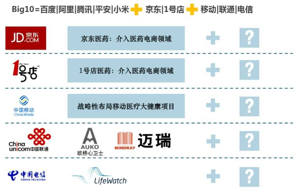 巨头杀入互联网医疗:Big10=BATPM+J1+Big3