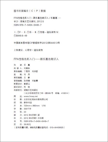 请相信,《FPA性格色彩入门:跟乐嘉色眼识人》绝非试图谋杀你的独特,相反,我们将一起探索为何在一些简单的基本规律下,会衍生出无数变化且迥然不同的个体。无论如何,找到一些基本规律,可以帮助我们首先让复杂的生活变得简单明朗,然后再让简单明朗的生活变得有色彩和灿烂起来。借由此,我们当知如何更好地建立起我们希望的人际关系,拥有强大的自我力量和对他人的影响力。