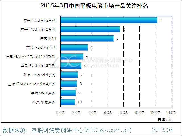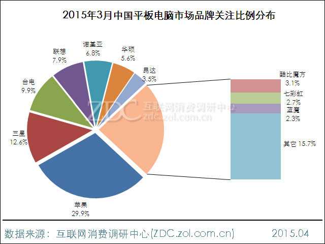 图1 2015年3月中国平板电脑市场品牌关注比例分布