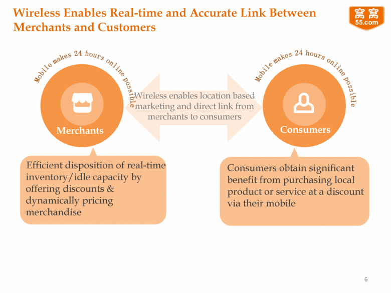| 无线支持实时和商家和客户之间的精确Link无线使得基于位置的营销,并从商家向消费者直接联系的实时库存/闲置产能的高效配置,通过提供折扣和动态定价的商品,消费者获得显著受益于当地购买的产品或在通过他们的移动招商消费者6打折服务 |