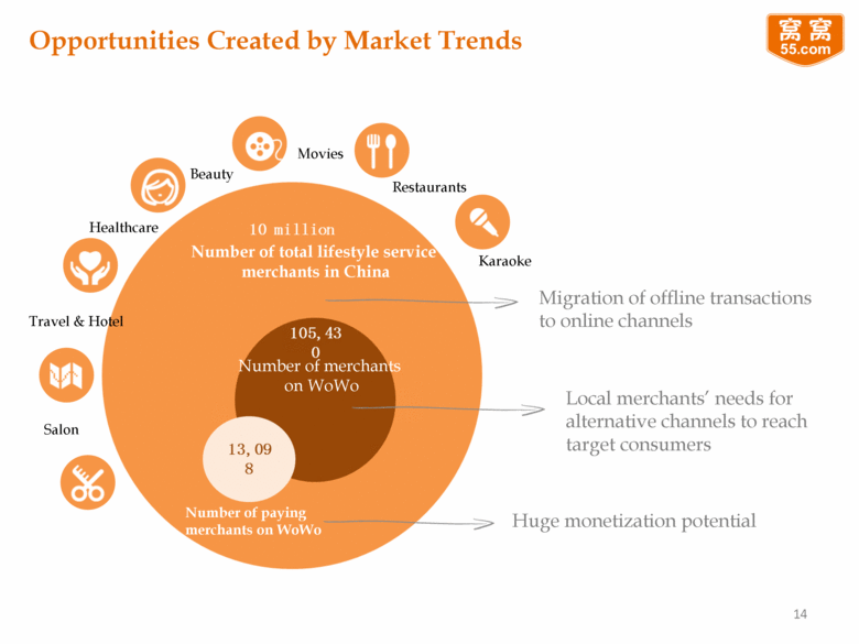 | 受市场趋势卡拉OK电影美容保健数总的生活方式服务客商喔喔号创建客商在中国迁移离线交易的网上渠道的本地商家的需求的替代渠道的机会接触目标消费者对喔喔餐馆支付客商巨大的潜在商业化数量旅游与酒店沙龙14 13098 |