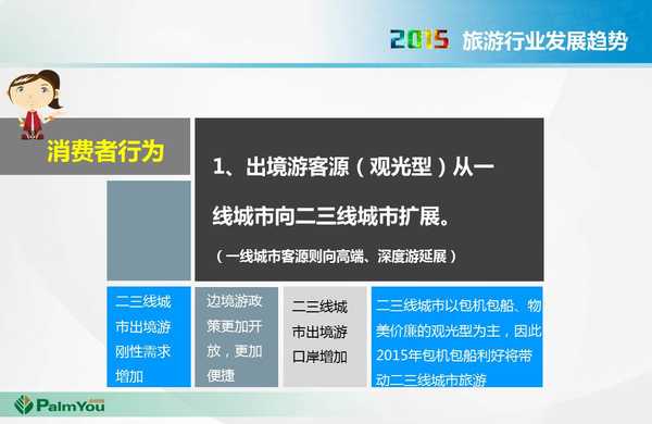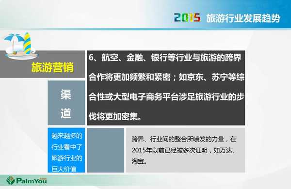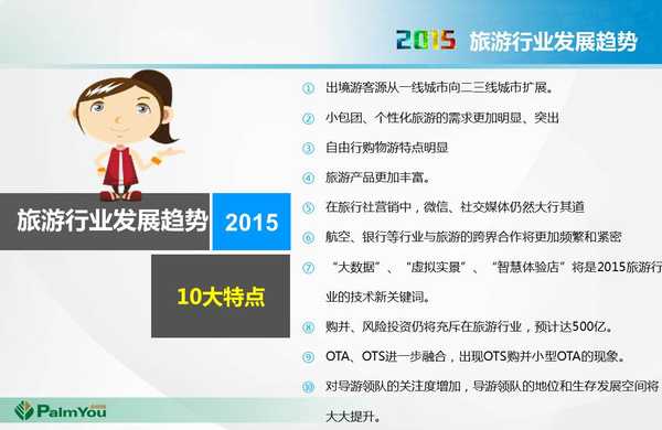 2015旅游行业发展趋势 更多阅读:旅游行业是最先受到数字化变革影响的几大行业之一2013年整个中国旅游行业市场总额近4000亿元Dratio:2012年9月旅游行业网站传播效果研究2015年3月微博旅游行业发展报告ORC International:调查显示社交媒体已全面渗透到旅游行业百度研究中心:2013年度旅游行业搜索研究eMarketer:2014年美国旅游行业数字广告开支的预测与趋势旅游行业应如何利用图片吸引消费者?一图看尽旅游行业与互联网的结合模式eMarketer:旅游搜索引擎正处于十字路口360:2015年旅游行业发展现状&未来趋势2023年百度旅游行业报告信息图:移动科技如何改变世界旅游GBTA:2022年全球商务旅游行业可持续发展现况报告2020航空计划:未来几个月内旅游行业的8大变化趋势报告
