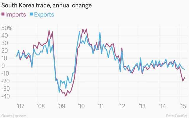 4、受经济增速放缓和低油价影响,韩国贸易顺差进一步收窄至64.4亿美元。