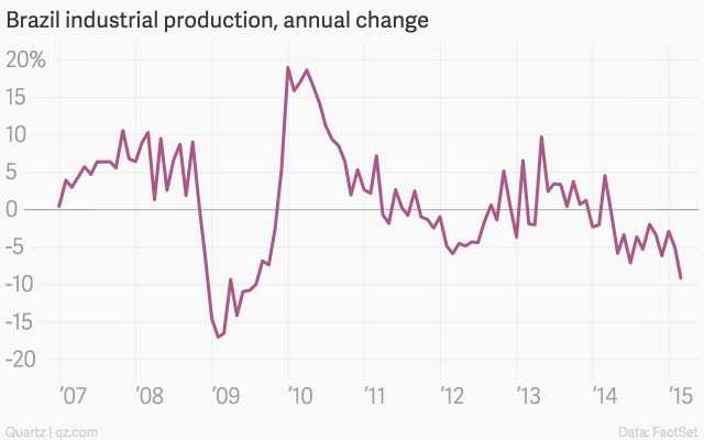 6、巴西工业产出加速萎缩,经济步入衰退。