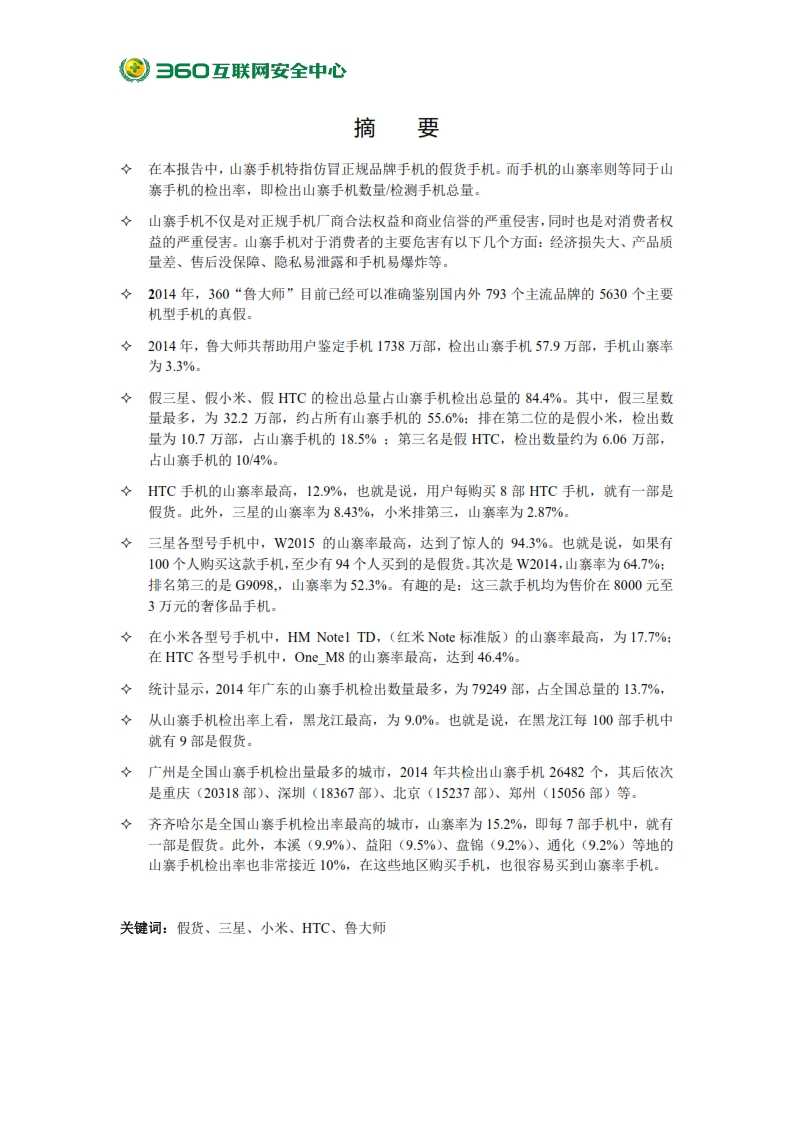 摘要 * 在本报告中,山寨手机特指仿冒正规品牌手机的假货手机。而手机的山寨率则等同于山寨手机的检出率,即检出山寨手机数量/检测手机总量。