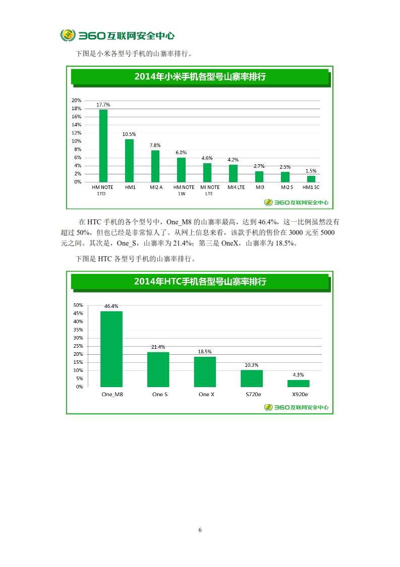 * 在小米各型号手机中,HM Note1 TD,(红米Note标准版)的山寨率最高,为17.7%;在HTC各型号手机中,One_M8的山寨率最高,达到46.4%。