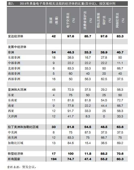报告还指出,在过去几年中,发展中国家的电商“信息畅通性发展很快,移动电话、社交媒体和互联网使用水平不断提高。新的应用程序、平台和支付解决方案的不断出现,推动了电商的发展。电子商务正在发展中国家迅猛发展,包括最不发达的国家。”
