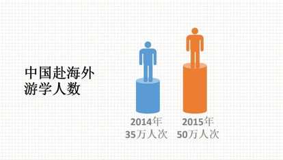 根据两厘米国际游学网的不完全统计,2014年中国海外游学人数接近35万人次,市场规模近90亿元,预计2015年将达到50万人次,市场规模达到120亿元,并将以每年不低于40%的比例增长。同时,参与人群群体不断扩大,学生群体呈现低龄化趋势,覆盖到小学三年级到大学所有年龄段,有47%的小学生有游学打算;白领群体稳定增长;老年群体成为新的增长点。
