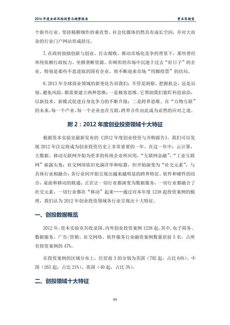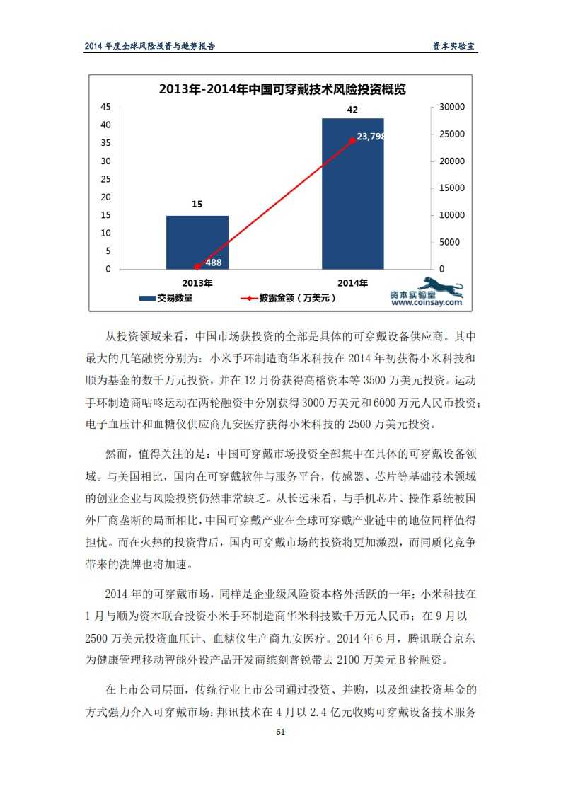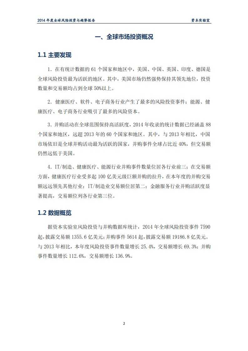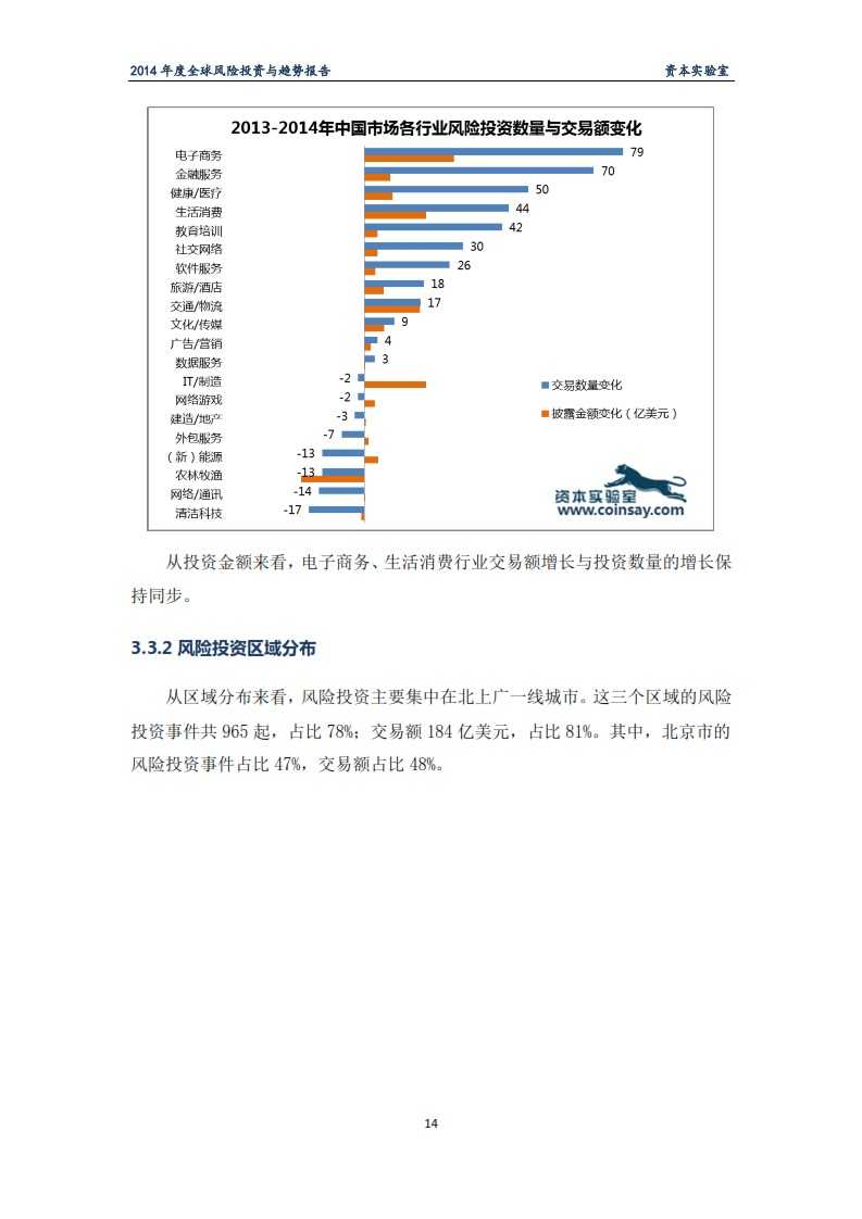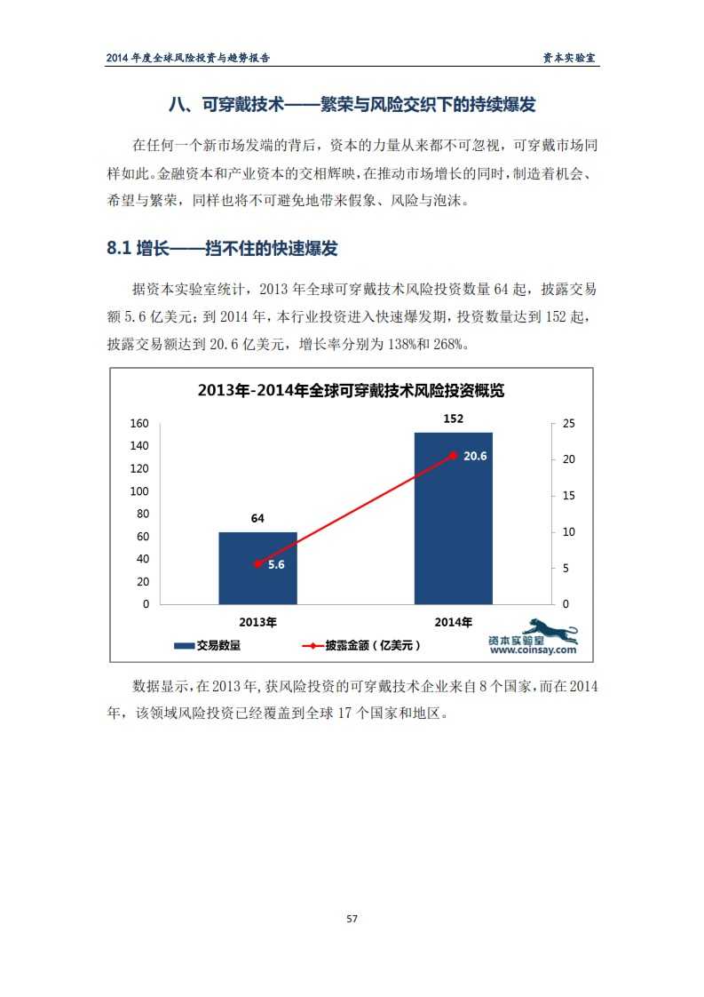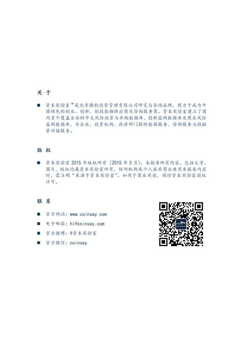 资本实验室:2014年度全球风险投资与趋势报告 更多阅读:Crunchbase:2018年中国初创企业已经获得938亿美元投资资本实验室:《可穿戴报告》之资本介入虚拟货币领域创业投资与趋势报告Crunchbase:2018年约会相关初创企业获得1.27亿美元风险投资风险投资决策过程中可能出现的认知偏差道琼斯:2014年中国风险投资总额达到155亿美元infocaptor:20年创业风险投资数据分析Venture Source:2013年Q3美国科技公司共融资81亿美元 达成806笔风投交易风险投资,相信数据还是相信直觉?Rutberg&Co:2011年美国移动营销市场风险投资金额激增商业周刊:2011年获利最丰十大美国风险投资公司中国消费趋势报告:三大新兴力量引领消费新经济Crunchbase:2025年第三季度北美风险投资总额631亿美元Dealroom:2025年意大利风险投资报告Crunchbase:2025年第二季度风险投资总额910亿美元