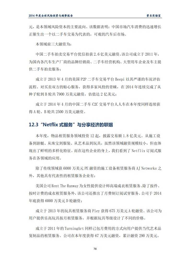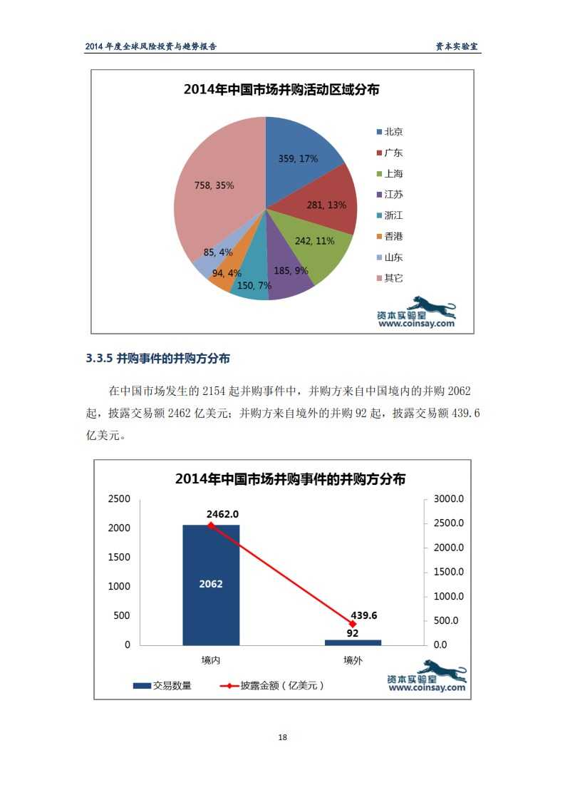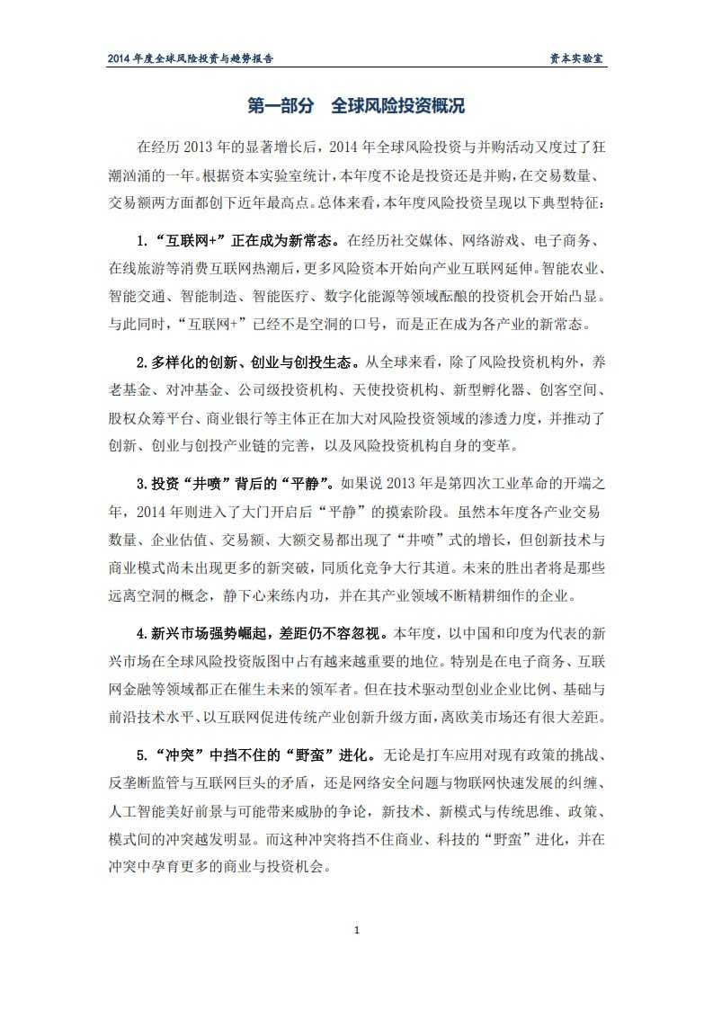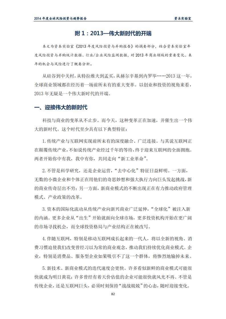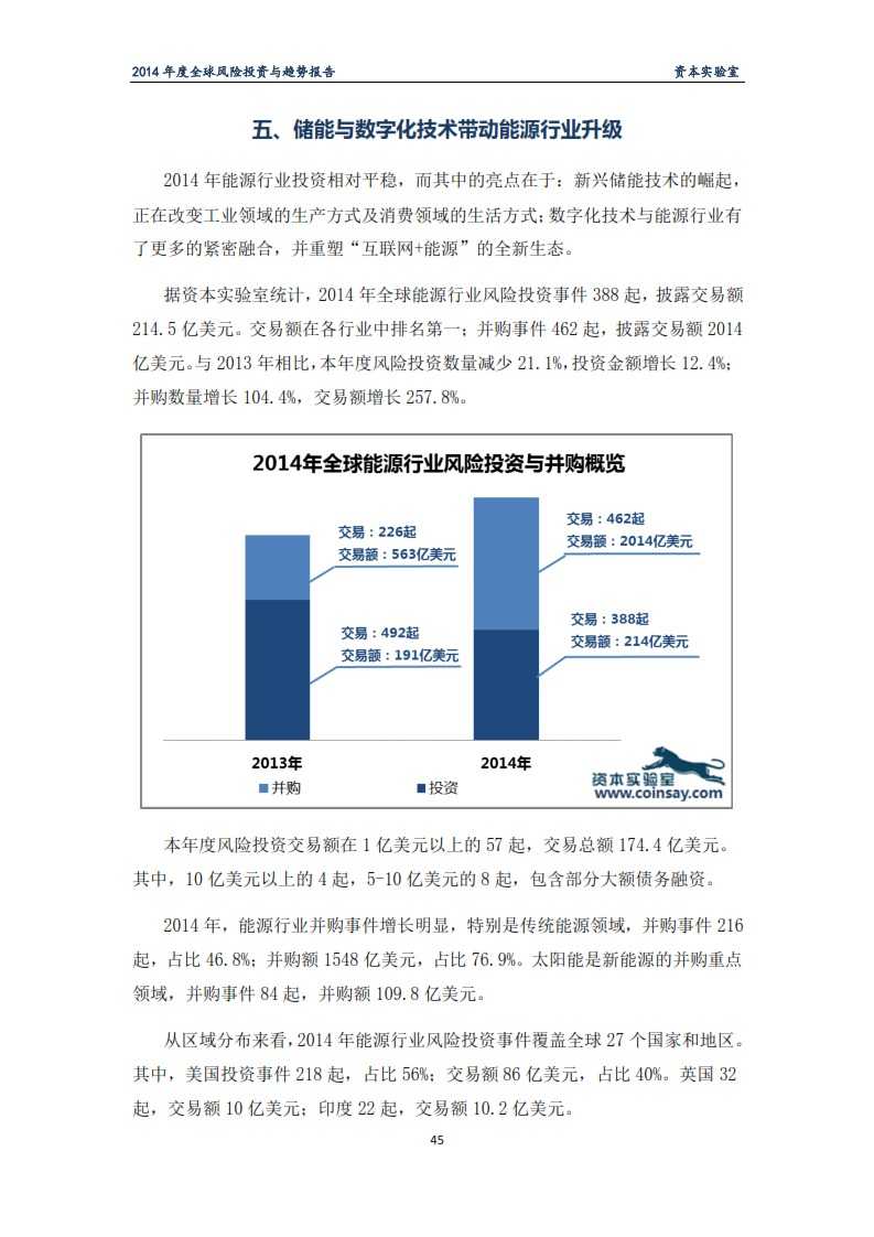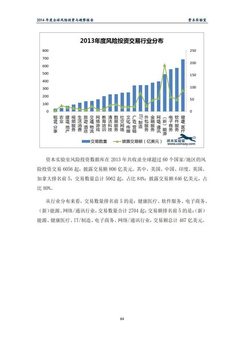 资本实验室:2014年度全球风险投资与趋势报告 更多阅读:Crunchbase:2018年中国初创企业已经获得938亿美元投资资本实验室:《可穿戴报告》之资本介入虚拟货币领域创业投资与趋势报告Crunchbase:2018年约会相关初创企业获得1.27亿美元风险投资风险投资决策过程中可能出现的认知偏差道琼斯:2014年中国风险投资总额达到155亿美元infocaptor:20年创业风险投资数据分析Venture Source:2013年Q3美国科技公司共融资81亿美元 达成806笔风投交易风险投资,相信数据还是相信直觉?Rutberg&Co:2011年美国移动营销市场风险投资金额激增商业周刊:2011年获利最丰十大美国风险投资公司中国消费趋势报告:三大新兴力量引领消费新经济Crunchbase:2025年第三季度北美风险投资总额631亿美元Dealroom:2025年意大利风险投资报告Crunchbase:2025年第二季度风险投资总额910亿美元
