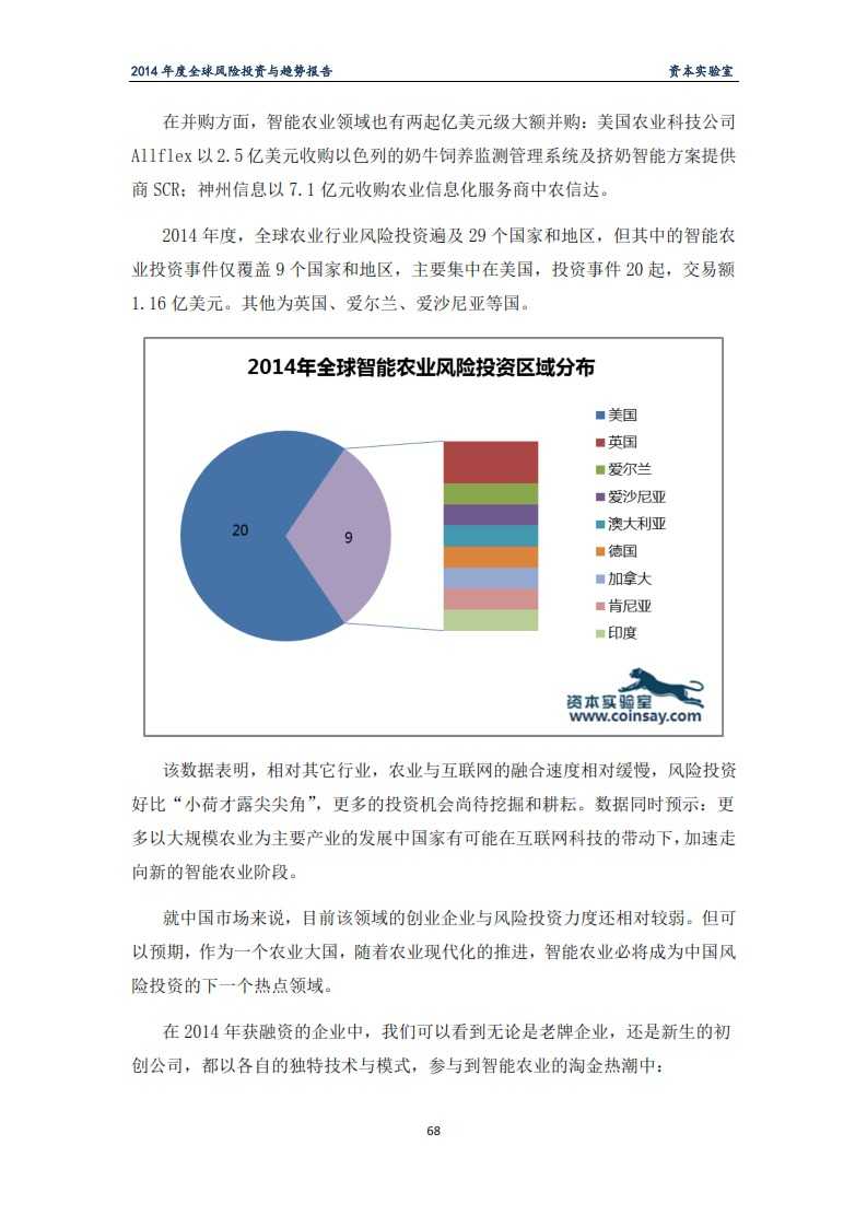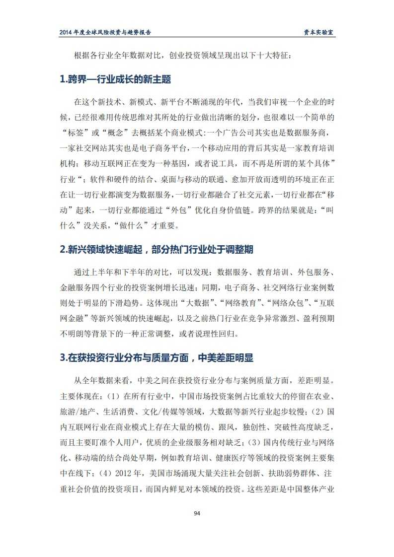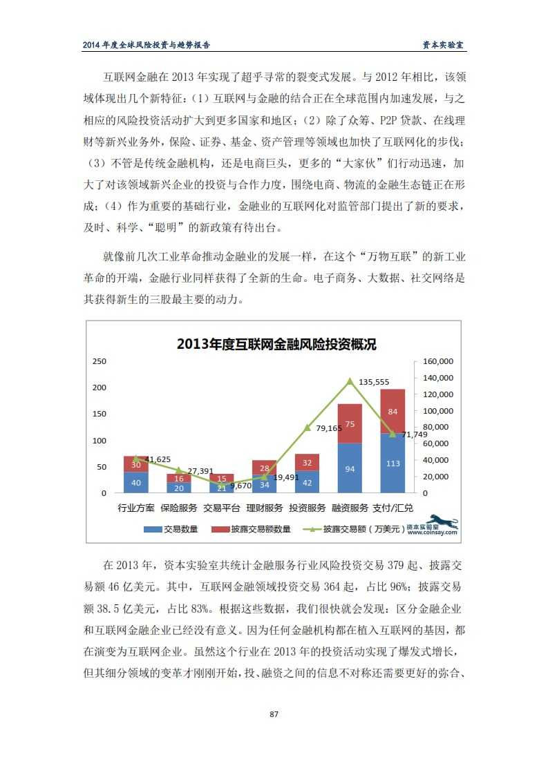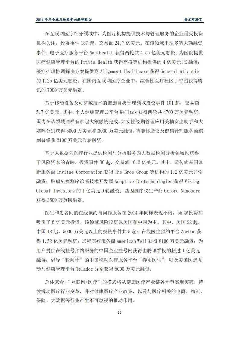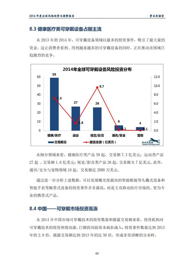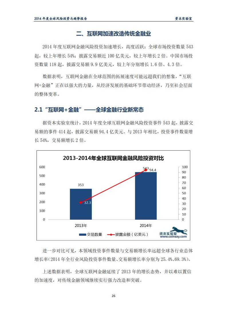 资本实验室:2014年度全球风险投资与趋势报告 更多阅读:Crunchbase:2018年中国初创企业已经获得938亿美元投资资本实验室:《可穿戴报告》之资本介入虚拟货币领域创业投资与趋势报告Crunchbase:2018年约会相关初创企业获得1.27亿美元风险投资风险投资决策过程中可能出现的认知偏差道琼斯:2014年中国风险投资总额达到155亿美元infocaptor:20年创业风险投资数据分析Venture Source:2013年Q3美国科技公司共融资81亿美元 达成806笔风投交易风险投资,相信数据还是相信直觉?Rutberg&Co:2011年美国移动营销市场风险投资金额激增商业周刊:2011年获利最丰十大美国风险投资公司中国消费趋势报告:三大新兴力量引领消费新经济Crunchbase:2025年第三季度北美风险投资总额631亿美元Dealroom:2025年意大利风险投资报告Crunchbase:2025年第二季度风险投资总额910亿美元