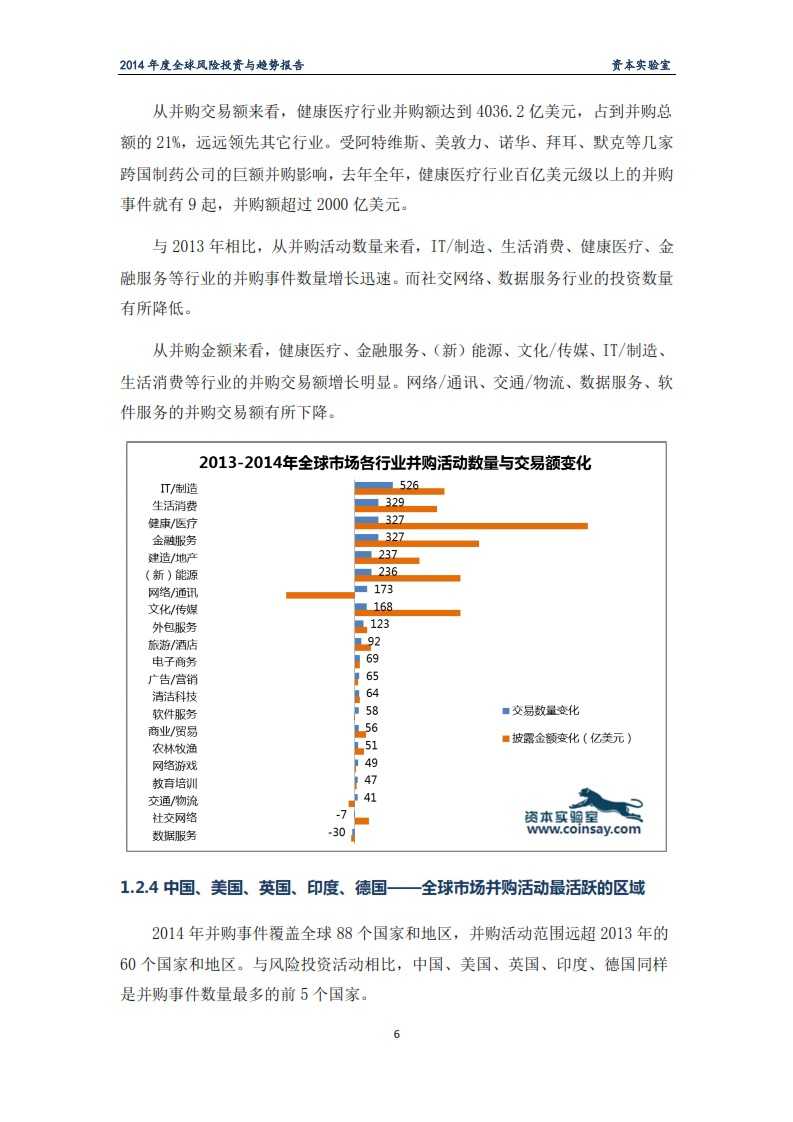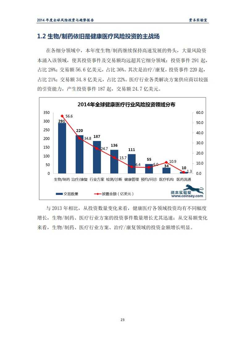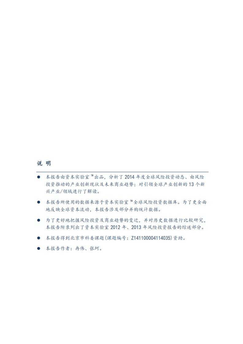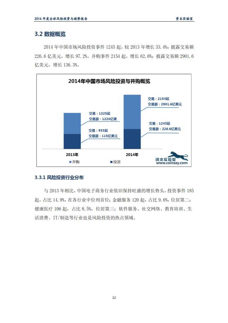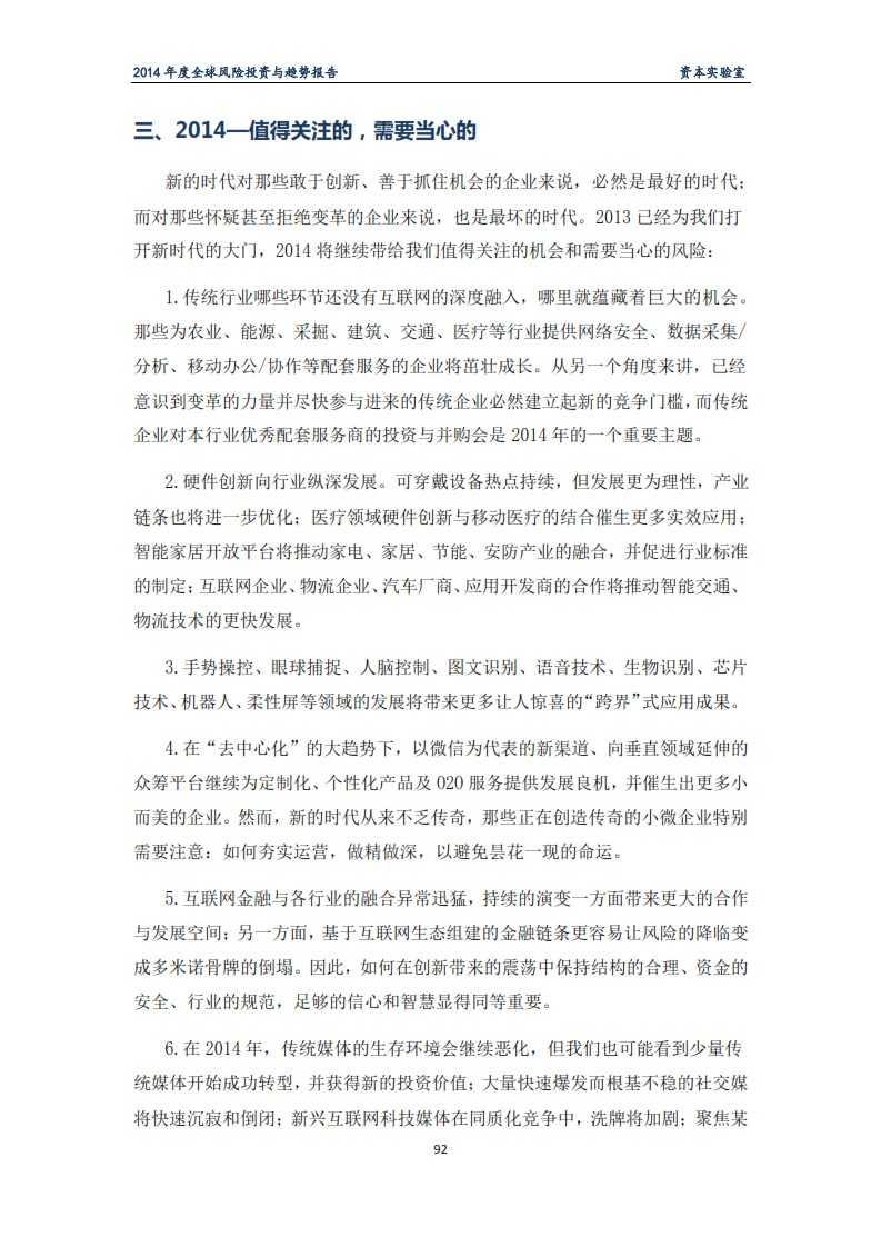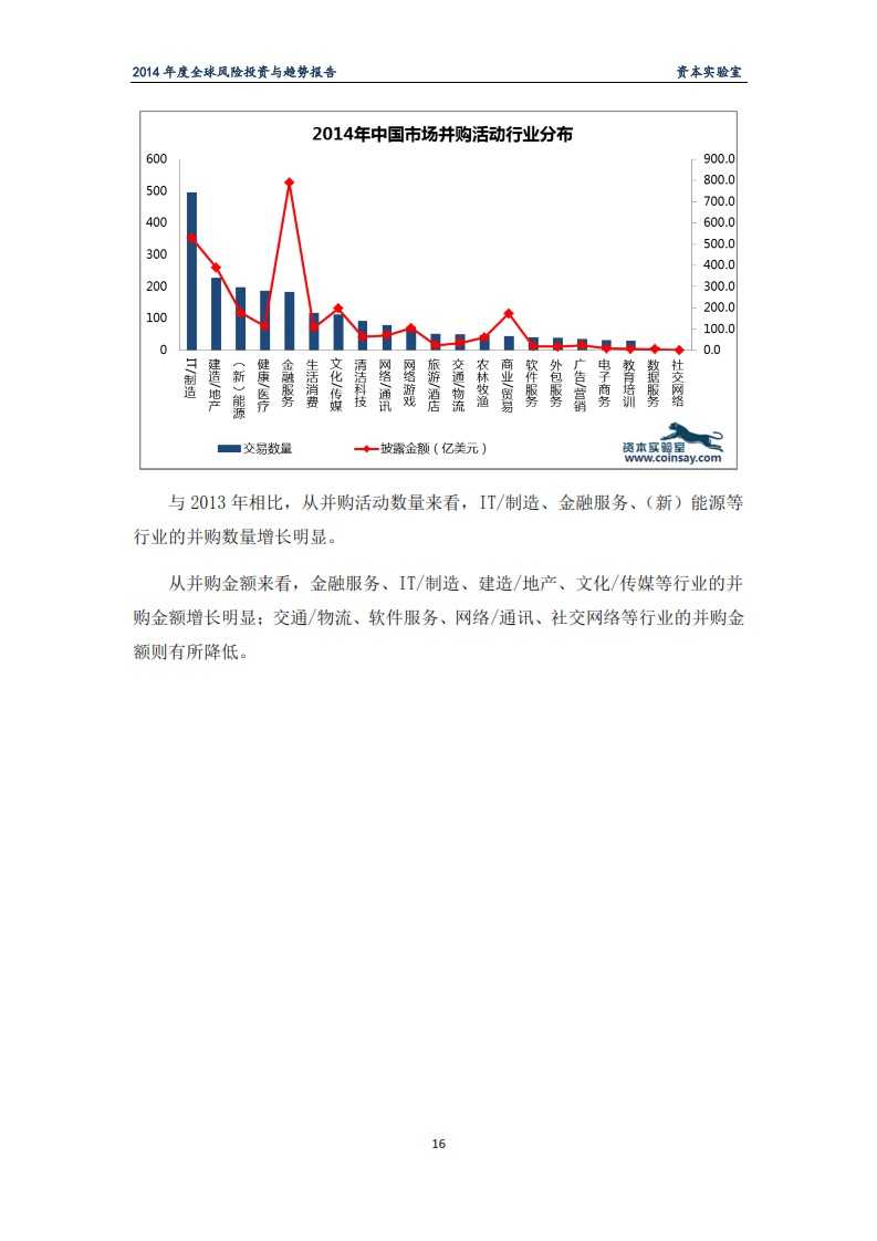 资本实验室:2014年度全球风险投资与趋势报告 更多阅读:Crunchbase:2018年中国初创企业已经获得938亿美元投资资本实验室:《可穿戴报告》之资本介入虚拟货币领域创业投资与趋势报告Crunchbase:2018年约会相关初创企业获得1.27亿美元风险投资风险投资决策过程中可能出现的认知偏差道琼斯:2014年中国风险投资总额达到155亿美元infocaptor:20年创业风险投资数据分析Venture Source:2013年Q3美国科技公司共融资81亿美元 达成806笔风投交易风险投资,相信数据还是相信直觉?Rutberg&Co:2011年美国移动营销市场风险投资金额激增商业周刊:2011年获利最丰十大美国风险投资公司中国消费趋势报告:三大新兴力量引领消费新经济Crunchbase:2025年第三季度北美风险投资总额631亿美元Dealroom:2025年意大利风险投资报告Crunchbase:2025年第二季度风险投资总额910亿美元