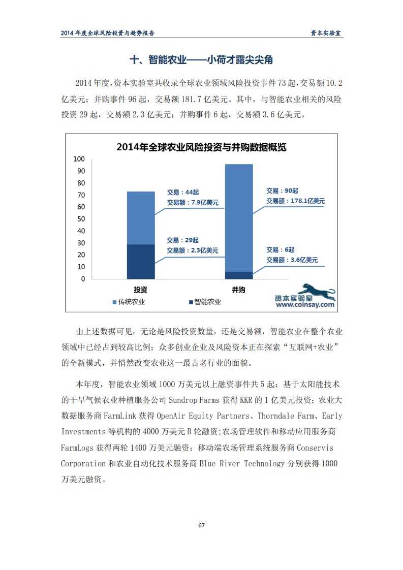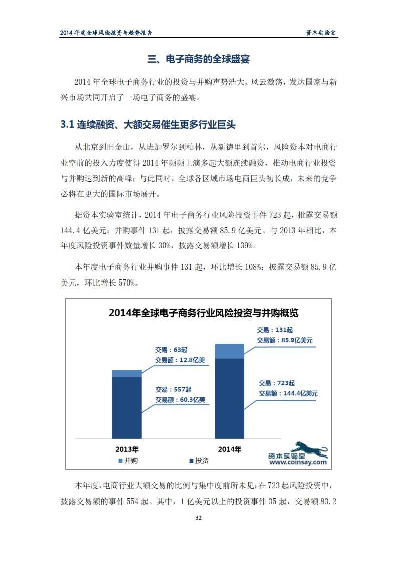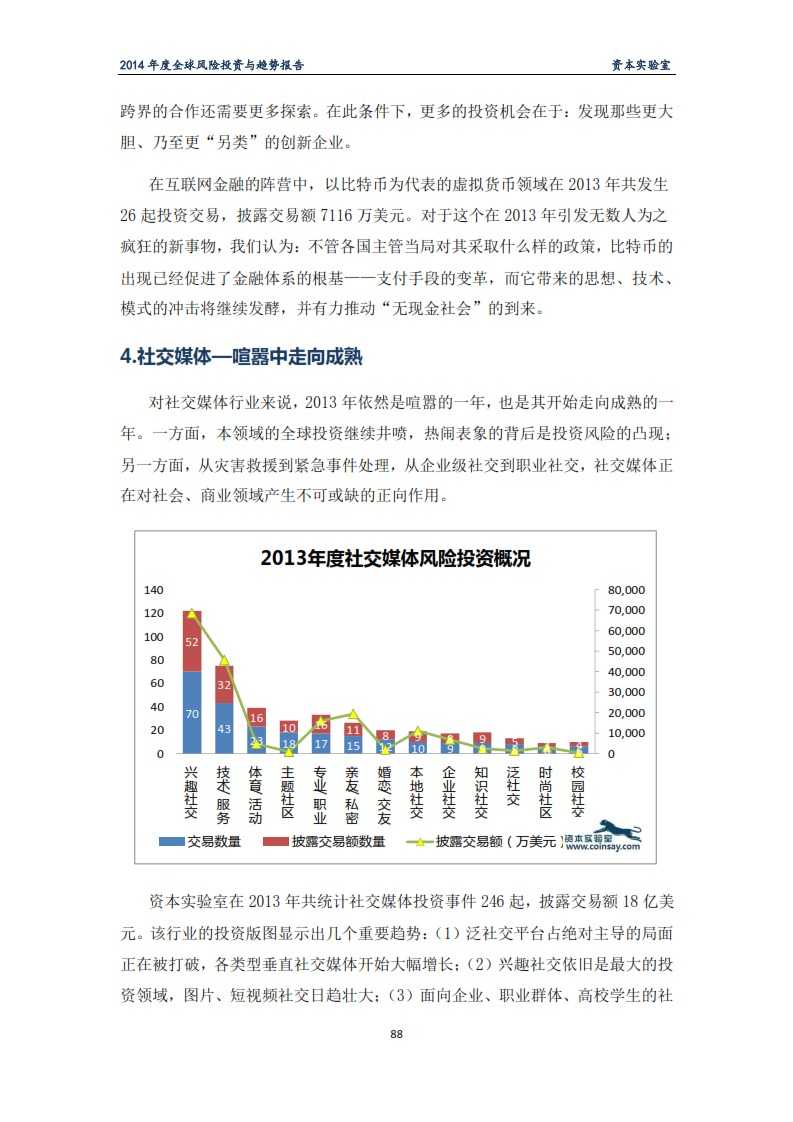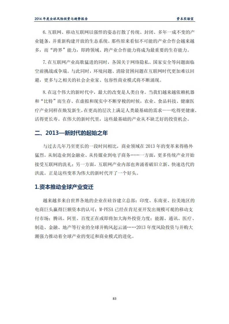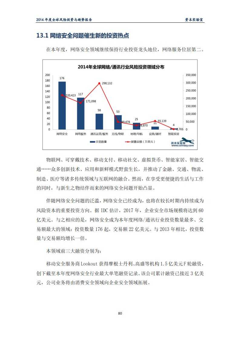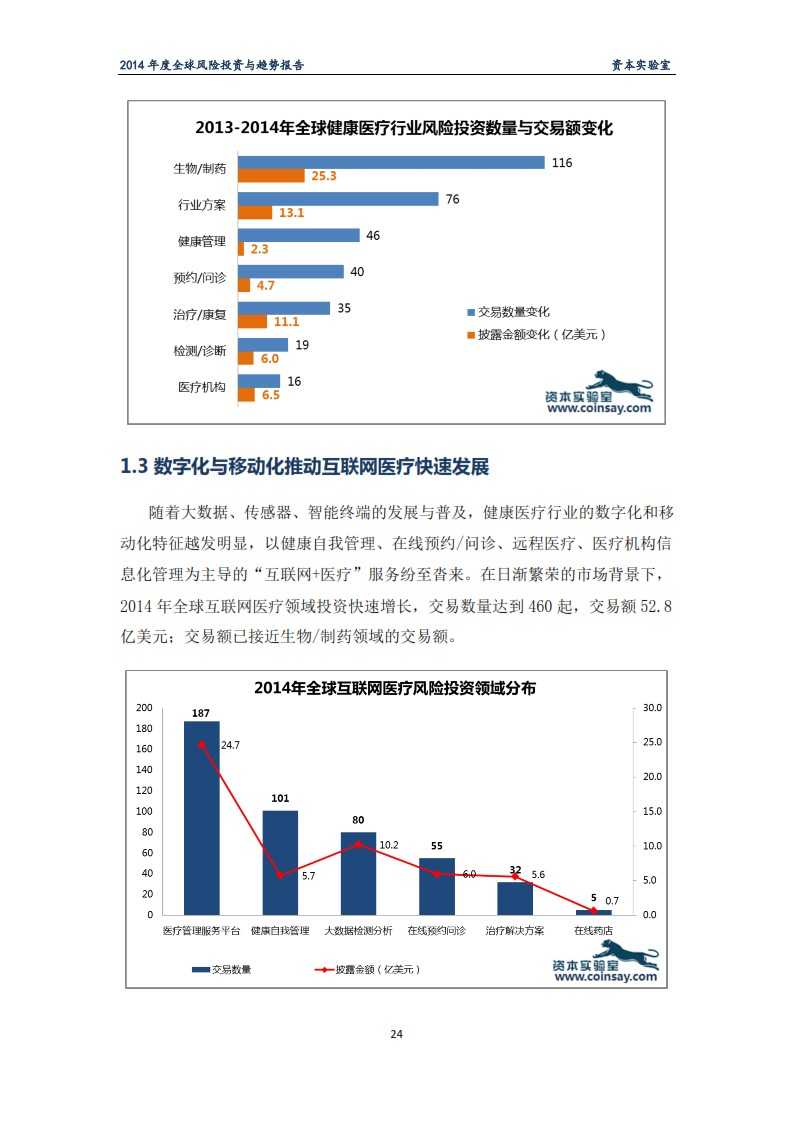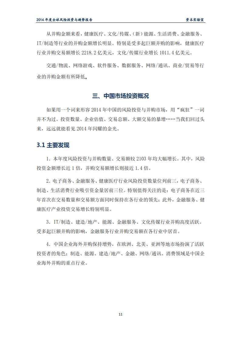 资本实验室:2014年度全球风险投资与趋势报告 更多阅读:Crunchbase:2018年中国初创企业已经获得938亿美元投资资本实验室:《可穿戴报告》之资本介入虚拟货币领域创业投资与趋势报告Crunchbase:2018年约会相关初创企业获得1.27亿美元风险投资风险投资决策过程中可能出现的认知偏差道琼斯:2014年中国风险投资总额达到155亿美元infocaptor:20年创业风险投资数据分析Venture Source:2013年Q3美国科技公司共融资81亿美元 达成806笔风投交易风险投资,相信数据还是相信直觉?Rutberg&Co:2011年美国移动营销市场风险投资金额激增商业周刊:2011年获利最丰十大美国风险投资公司中国消费趋势报告:三大新兴力量引领消费新经济Crunchbase:2025年第三季度北美风险投资总额631亿美元Dealroom:2025年意大利风险投资报告Crunchbase:2025年第二季度风险投资总额910亿美元