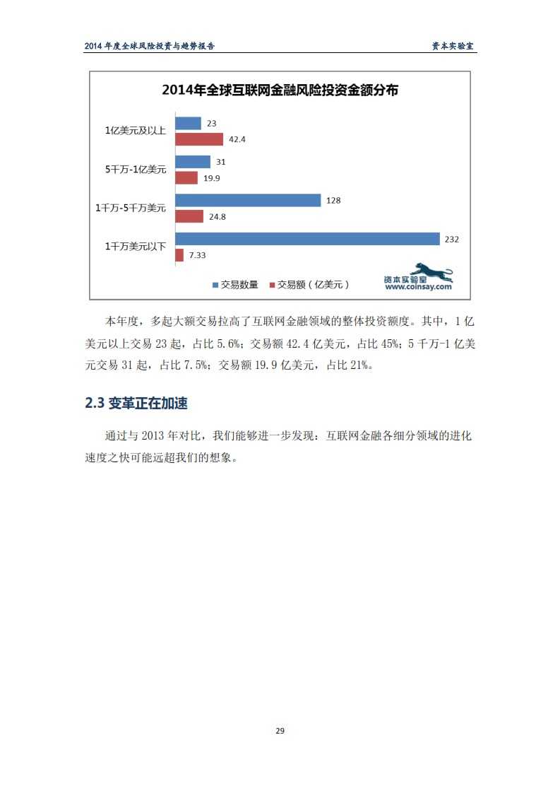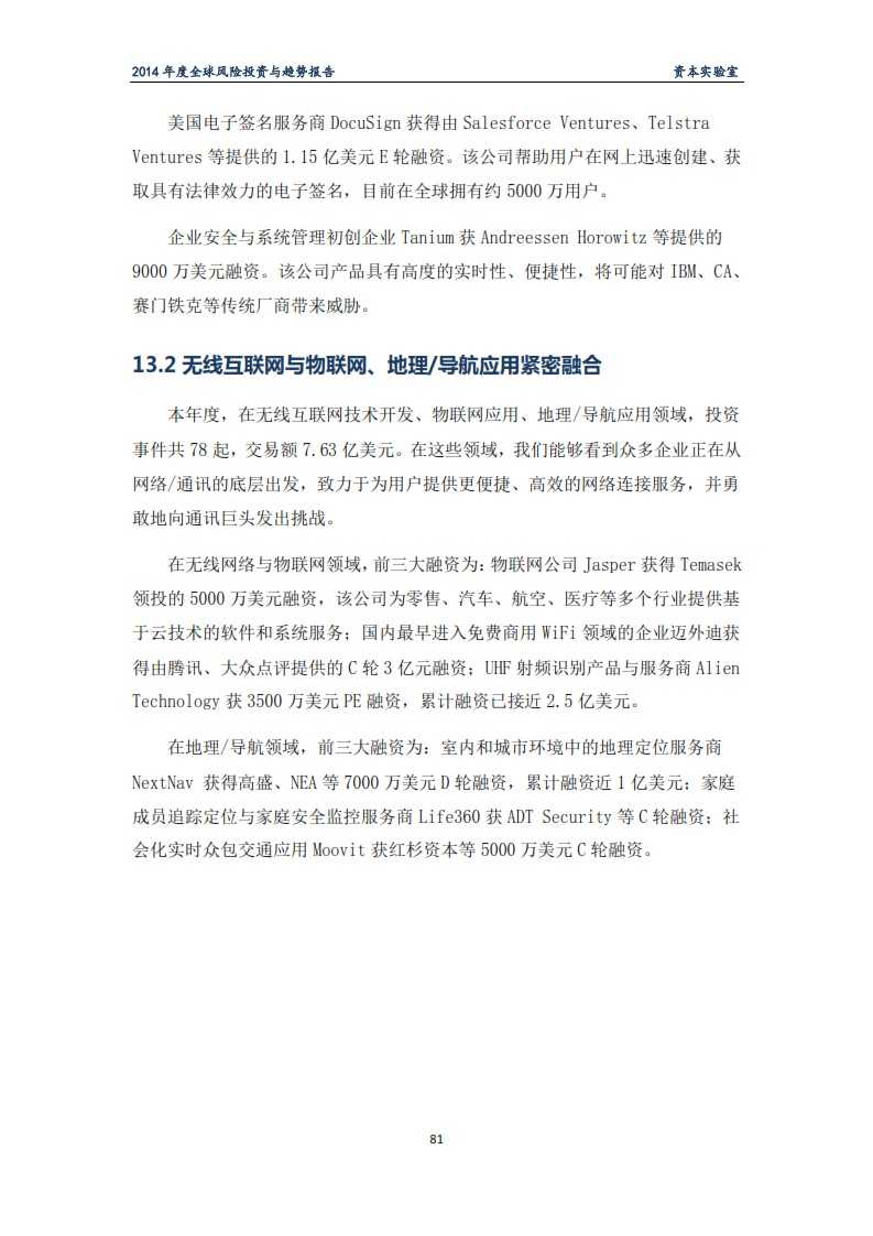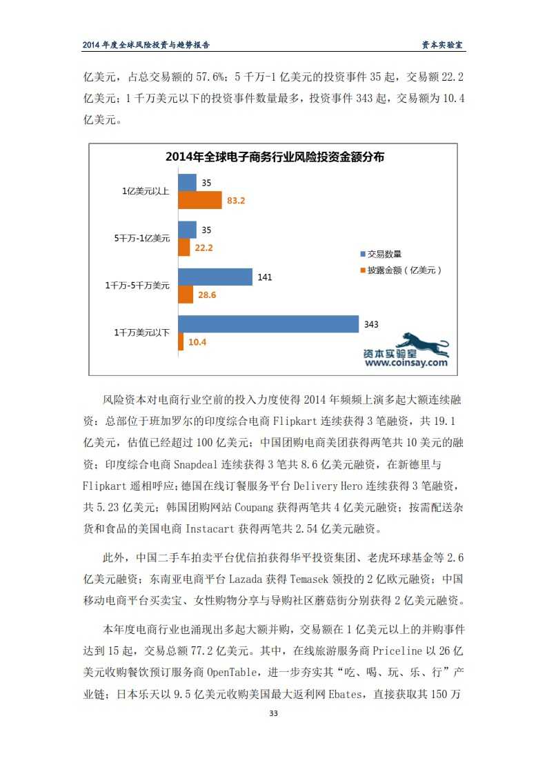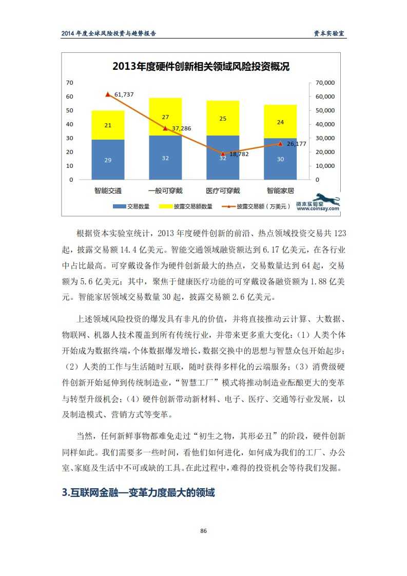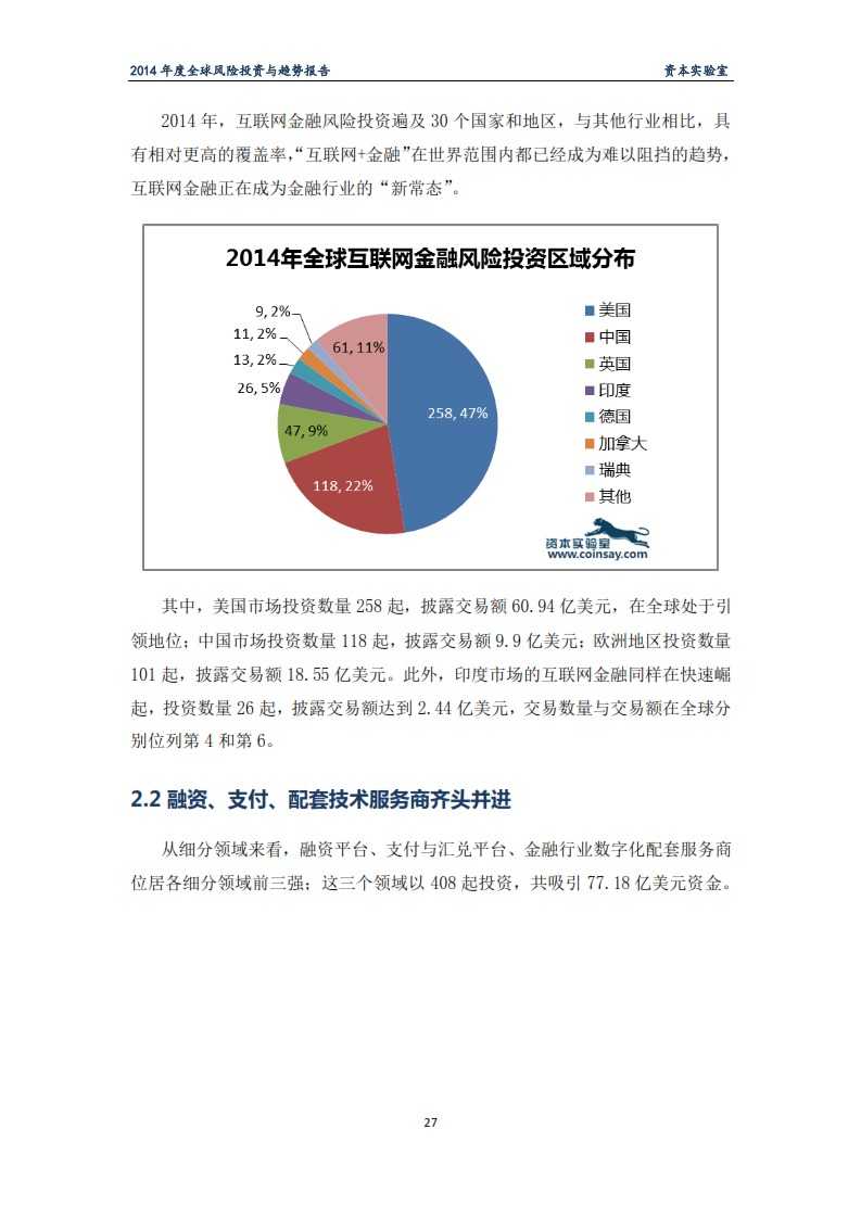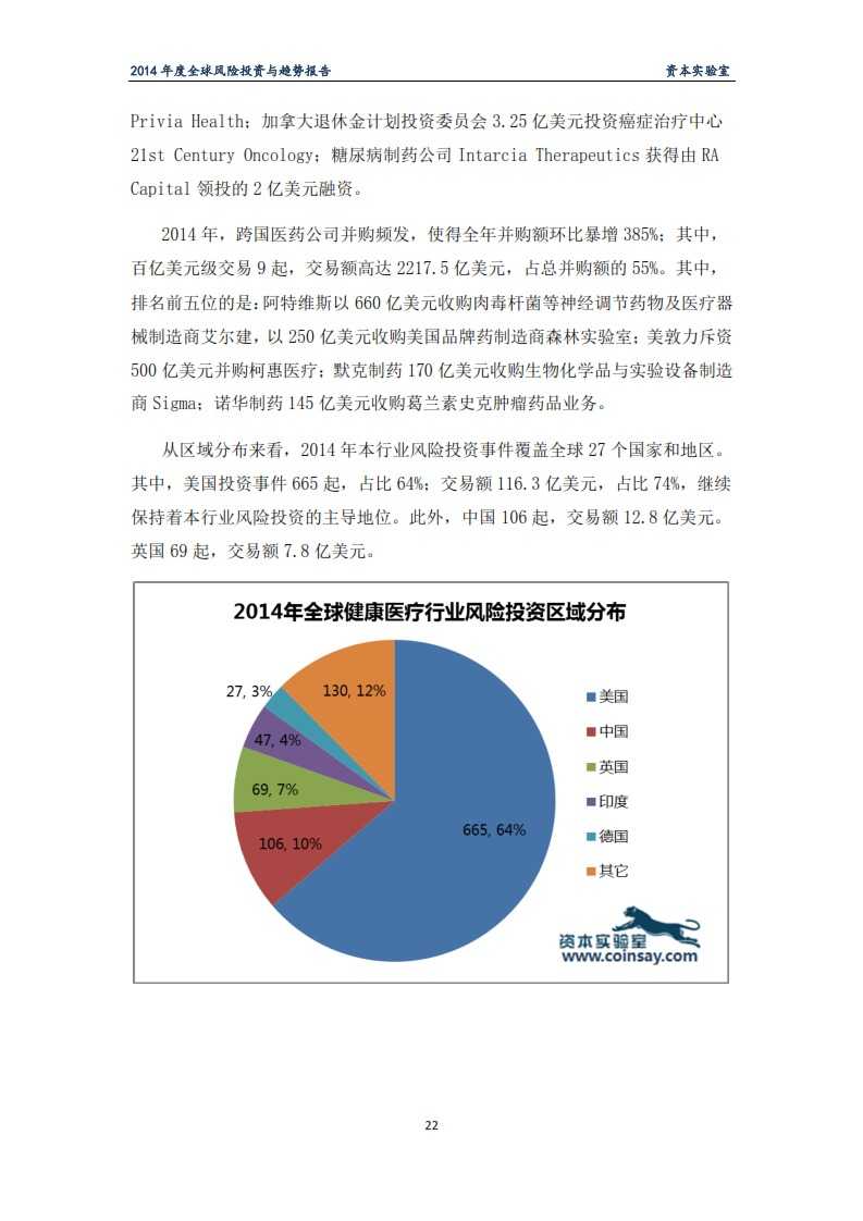 资本实验室:2014年度全球风险投资与趋势报告 更多阅读:Crunchbase:2018年中国初创企业已经获得938亿美元投资资本实验室:《可穿戴报告》之资本介入虚拟货币领域创业投资与趋势报告Crunchbase:2018年约会相关初创企业获得1.27亿美元风险投资风险投资决策过程中可能出现的认知偏差道琼斯:2014年中国风险投资总额达到155亿美元infocaptor:20年创业风险投资数据分析Venture Source:2013年Q3美国科技公司共融资81亿美元 达成806笔风投交易风险投资,相信数据还是相信直觉?Rutberg&Co:2011年美国移动营销市场风险投资金额激增商业周刊:2011年获利最丰十大美国风险投资公司中国消费趋势报告:三大新兴力量引领消费新经济Crunchbase:2025年第三季度北美风险投资总额631亿美元Dealroom:2025年意大利风险投资报告Crunchbase:2025年第二季度风险投资总额910亿美元