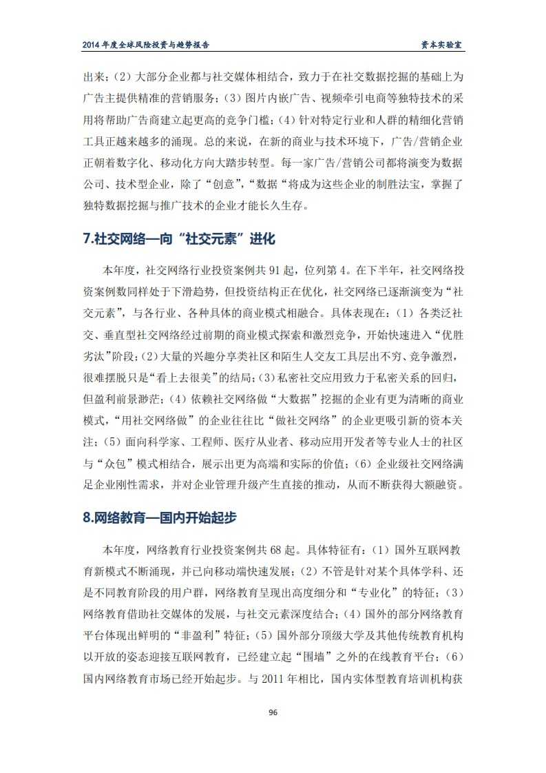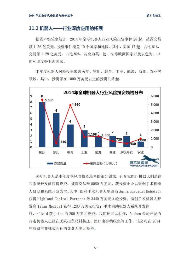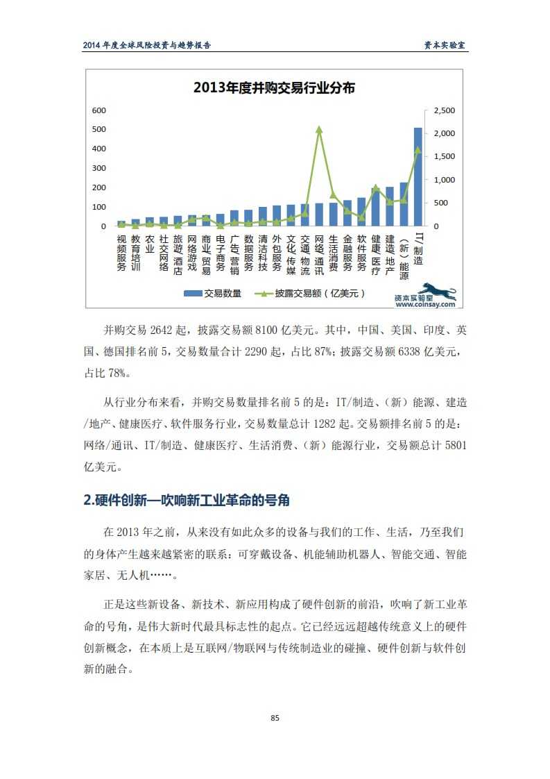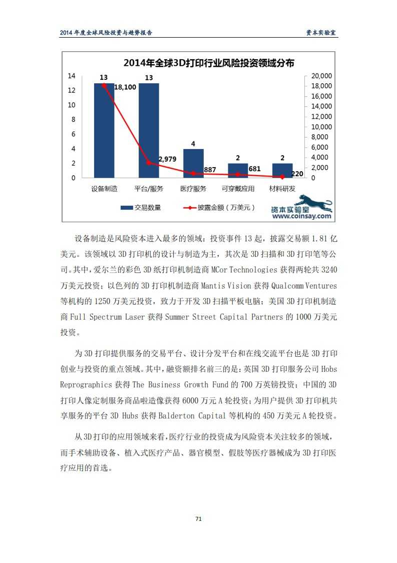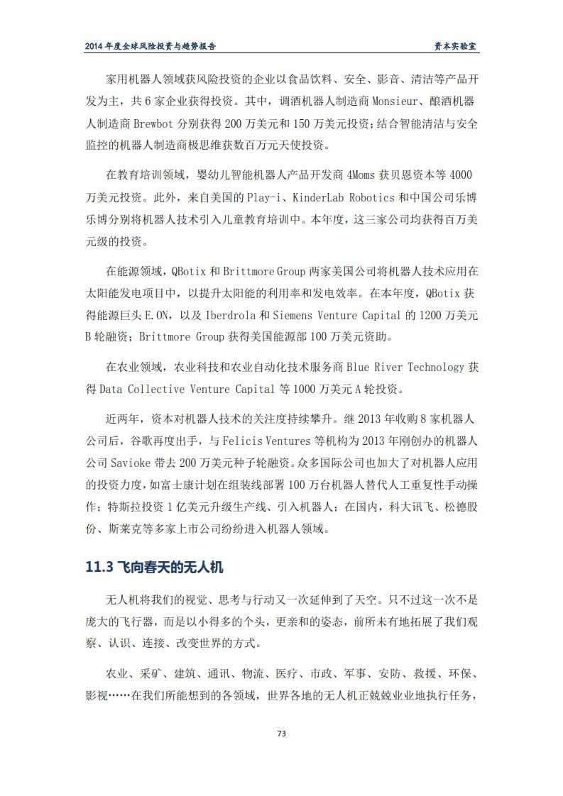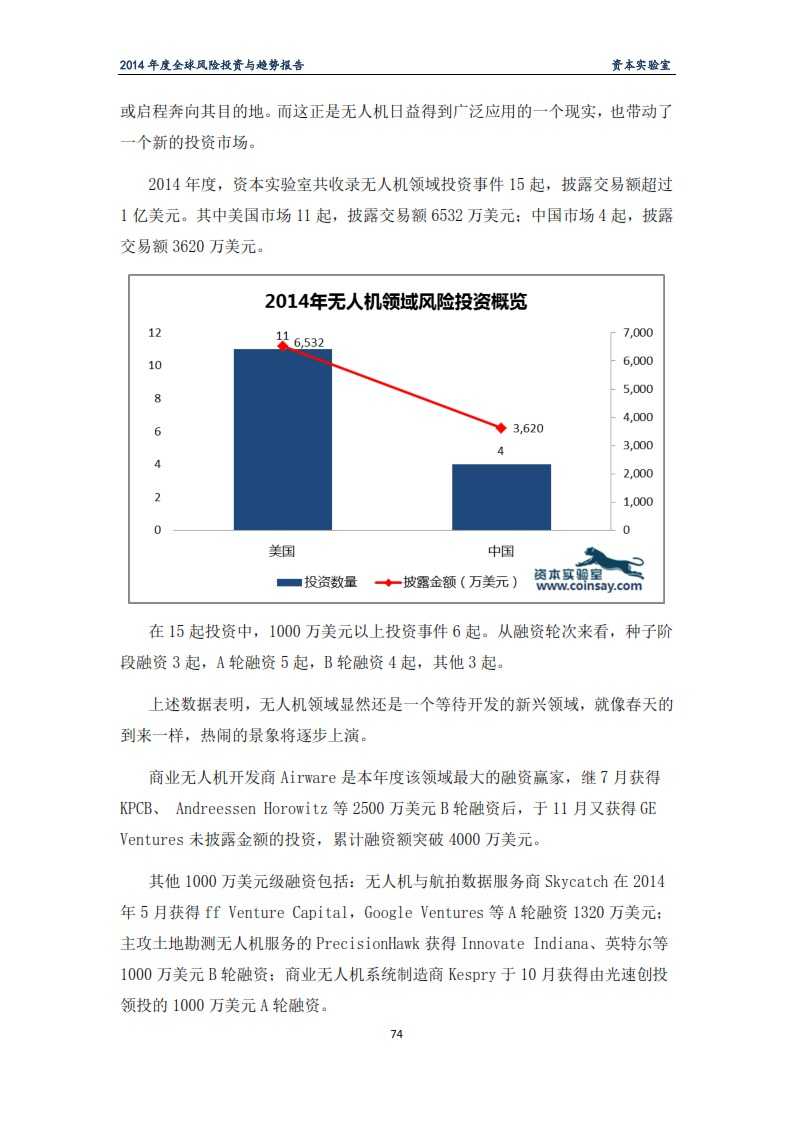 资本实验室:2014年度全球风险投资与趋势报告 更多阅读:Crunchbase:2018年中国初创企业已经获得938亿美元投资资本实验室:《可穿戴报告》之资本介入虚拟货币领域创业投资与趋势报告Crunchbase:2018年约会相关初创企业获得1.27亿美元风险投资风险投资决策过程中可能出现的认知偏差道琼斯:2014年中国风险投资总额达到155亿美元infocaptor:20年创业风险投资数据分析Venture Source:2013年Q3美国科技公司共融资81亿美元 达成806笔风投交易风险投资,相信数据还是相信直觉?Rutberg&Co:2011年美国移动营销市场风险投资金额激增商业周刊:2011年获利最丰十大美国风险投资公司中国消费趋势报告:三大新兴力量引领消费新经济Crunchbase:2025年第三季度北美风险投资总额631亿美元Dealroom:2025年意大利风险投资报告Crunchbase:2025年第二季度风险投资总额910亿美元