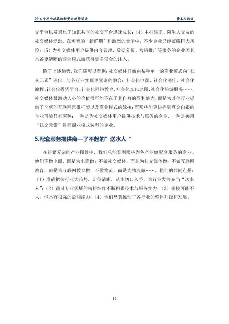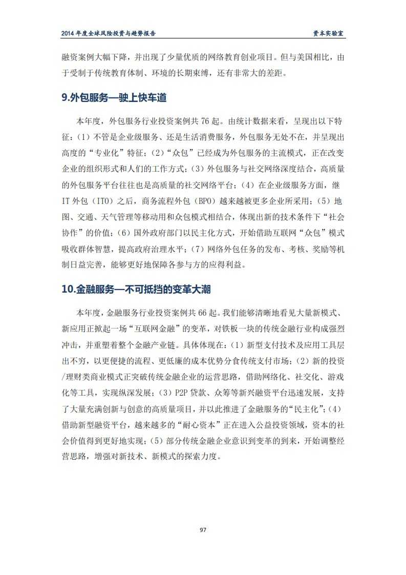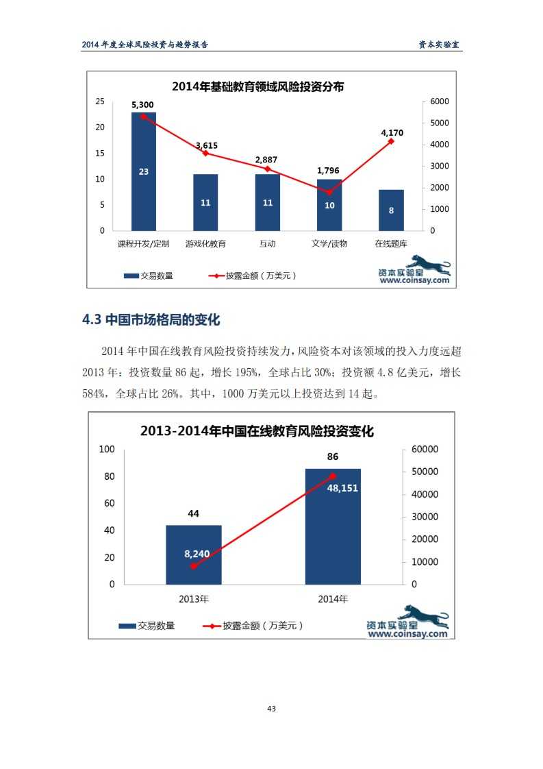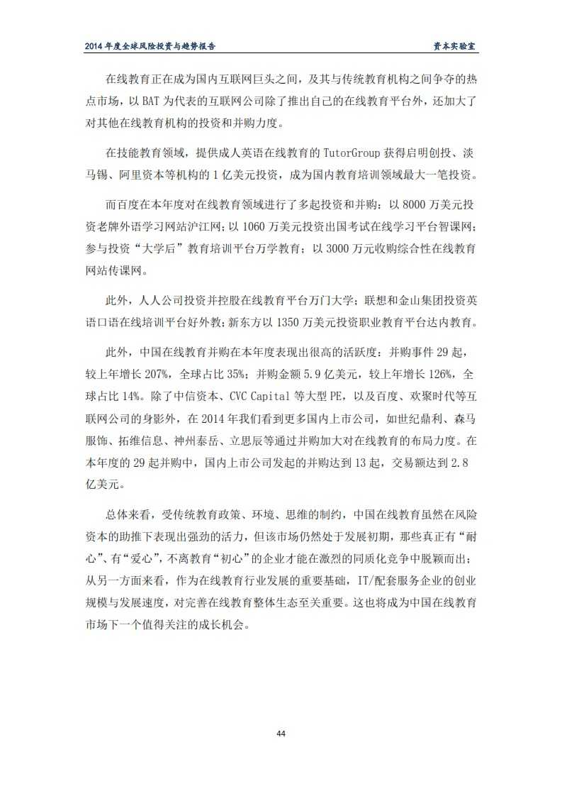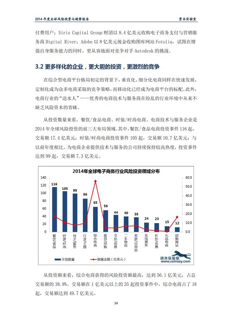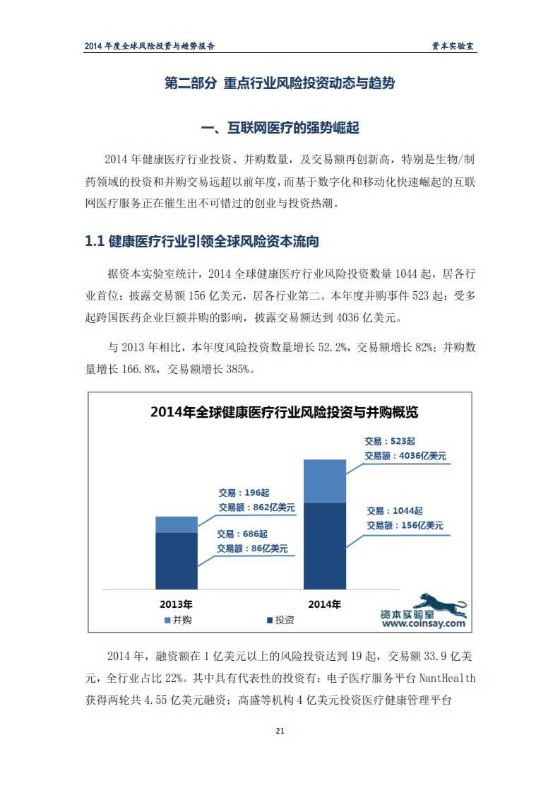 资本实验室:2014年度全球风险投资与趋势报告 更多阅读:Crunchbase:2018年中国初创企业已经获得938亿美元投资资本实验室:《可穿戴报告》之资本介入虚拟货币领域创业投资与趋势报告Crunchbase:2018年约会相关初创企业获得1.27亿美元风险投资风险投资决策过程中可能出现的认知偏差道琼斯:2014年中国风险投资总额达到155亿美元infocaptor:20年创业风险投资数据分析Venture Source:2013年Q3美国科技公司共融资81亿美元 达成806笔风投交易风险投资,相信数据还是相信直觉?Rutberg&Co:2011年美国移动营销市场风险投资金额激增商业周刊:2011年获利最丰十大美国风险投资公司中国消费趋势报告:三大新兴力量引领消费新经济Crunchbase:2025年第三季度北美风险投资总额631亿美元Dealroom:2025年意大利风险投资报告Crunchbase:2025年第二季度风险投资总额910亿美元