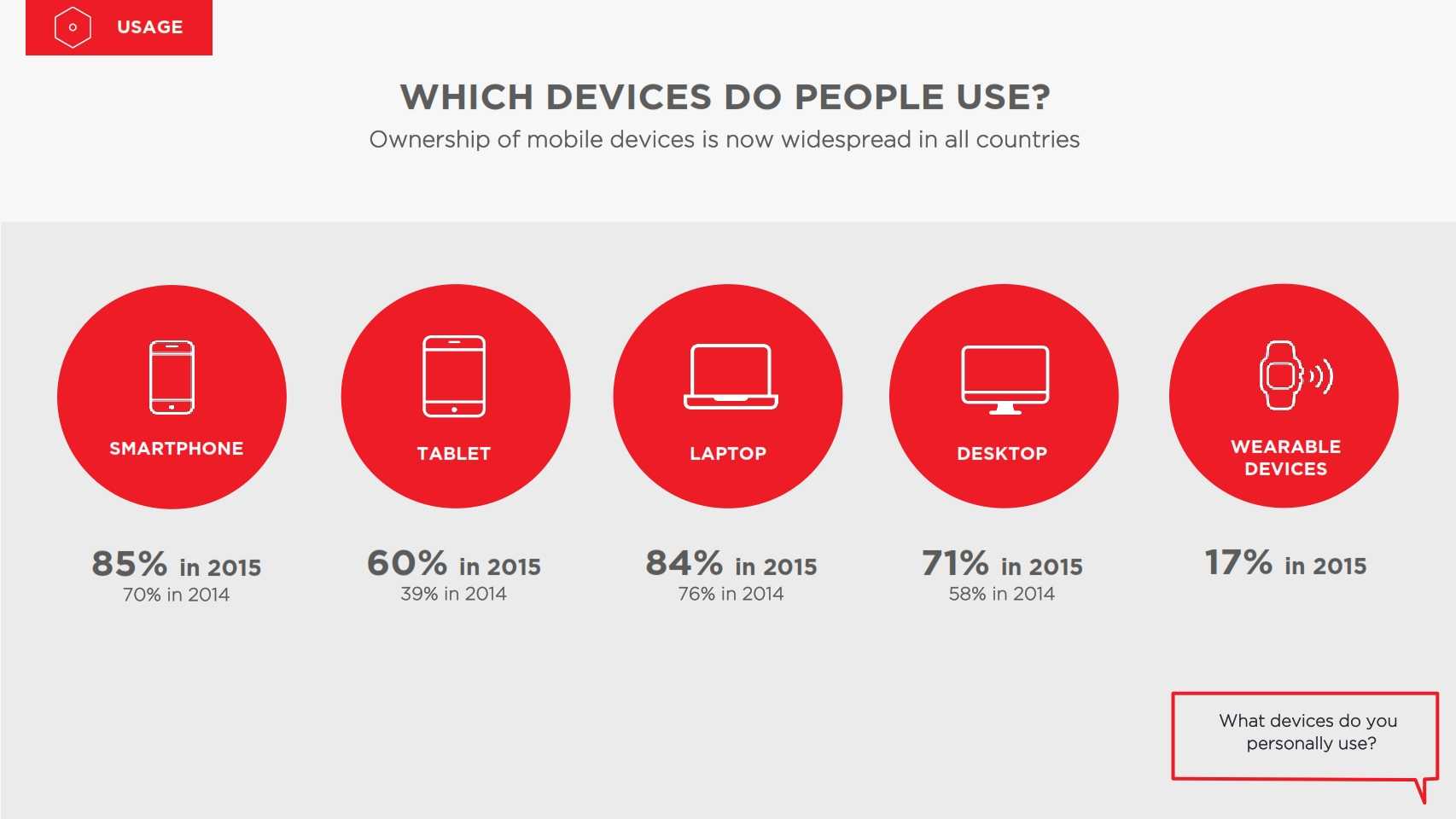 在拥有电脑、智能手机、平板电脑和智能电视的同时,消费者们又快速投入了可穿戴技术的怀抱—— 17%的消费者透露他们拥有可穿戴设备。可以预见,苹果手表和类似设备的发布和兴起将为全新的店内购物体验带来潜力。