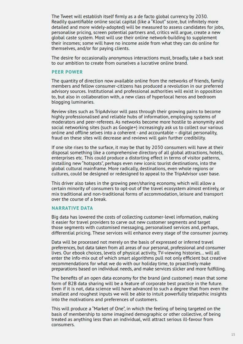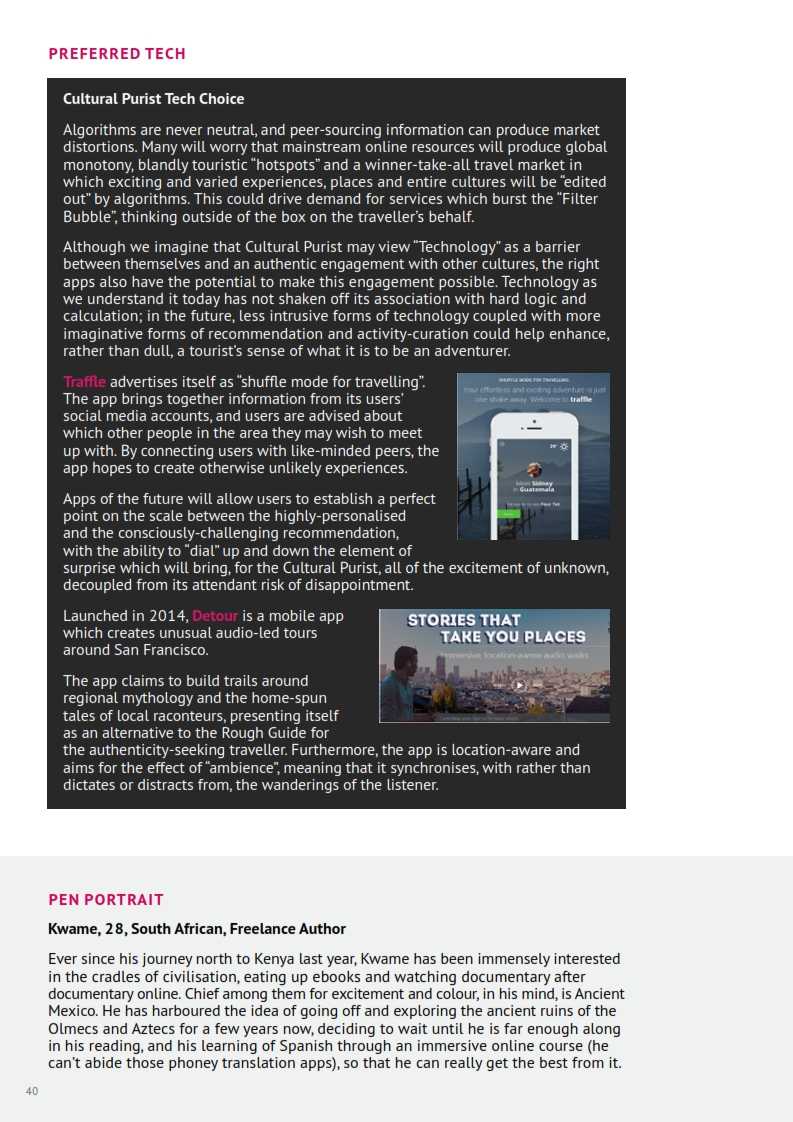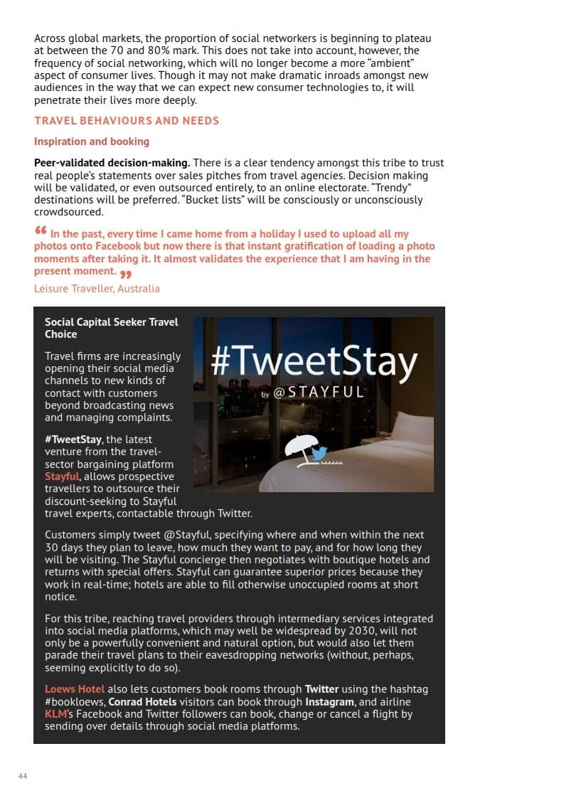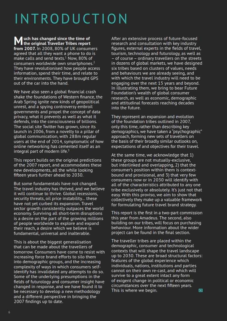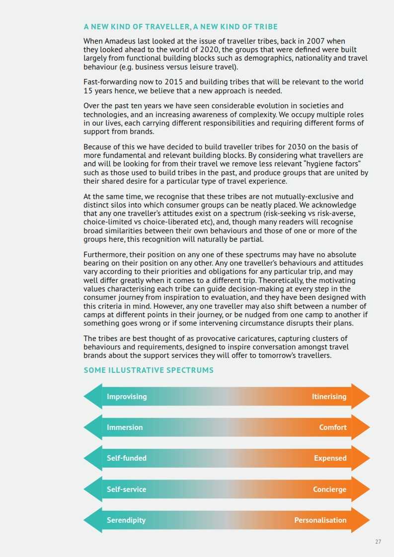 Amadeus:2030年未来的旅行者部落 更多阅读:Amadeus:2023年美洲游客报告ABTA:如何把握旅行者的预订喜好?FlightView:研究显示旅行者对机场体验的期待越来越高TripAdvisor:2014年全球旅行者调查报告MERCURYcsc:调查显示体验式旅行者平均每年进行五次休闲旅行Amadeus:2014年旅客偏好因素调查下一站去哪儿:中国千禧世代旅行者洞察报告ETravel Benchmark:手机应用能为旅行者提供更好的体验蚂蜂窝:旅行者阅读行为分析报告BeFresco:旅行者进行社交媒体分享的七大动因eDigital Research:旅行者如何使用在线和移动工具来安排行程?Priceline:数据显示42%的旅行者等到新年前一天的下午5点才预订他们当晚要入住的酒店MDG Advertising:旅行者如何使用社会媒体?–数据信息图Amadeus:2022年酒店市场洞察报告Amadeus财报:2015年Q1 Amadeus机票市场预订量份额达42.3%