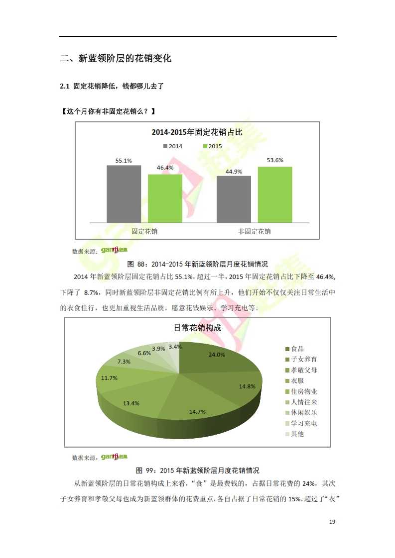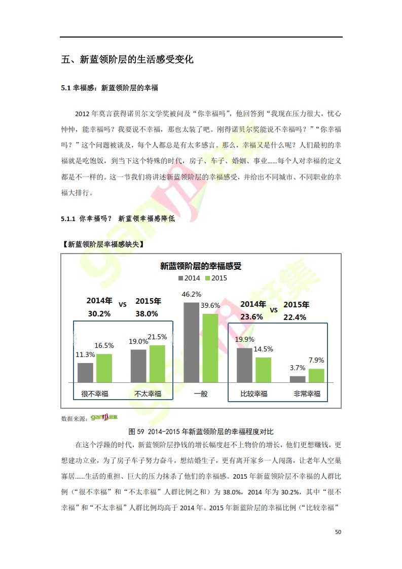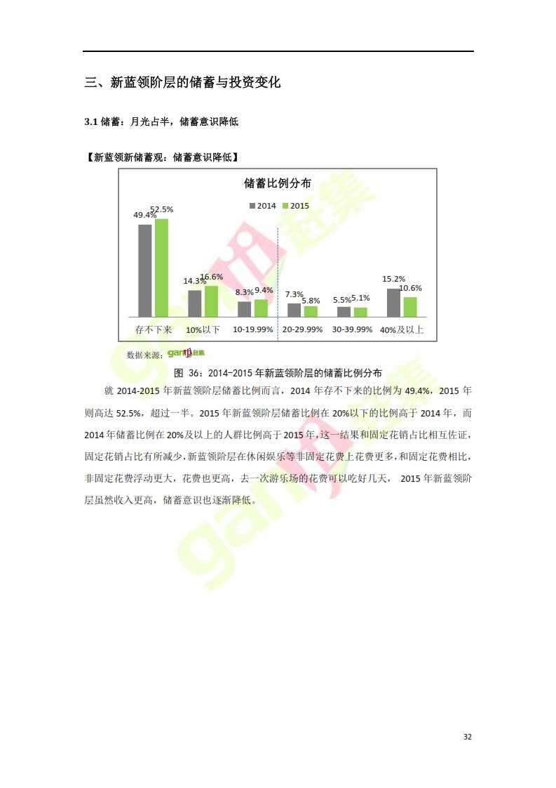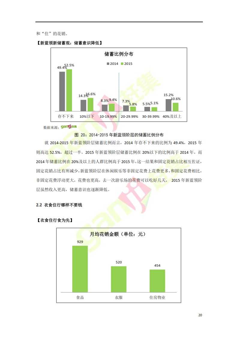 报告指出,2015年新蓝领阶层虽然收入更高,储蓄意识却逐渐降低。调查数据显示,2014年“新蓝领”中“月光族”的比例为49.4%,几近半数;到了2015年,这一比例迅速增加为52.5%。