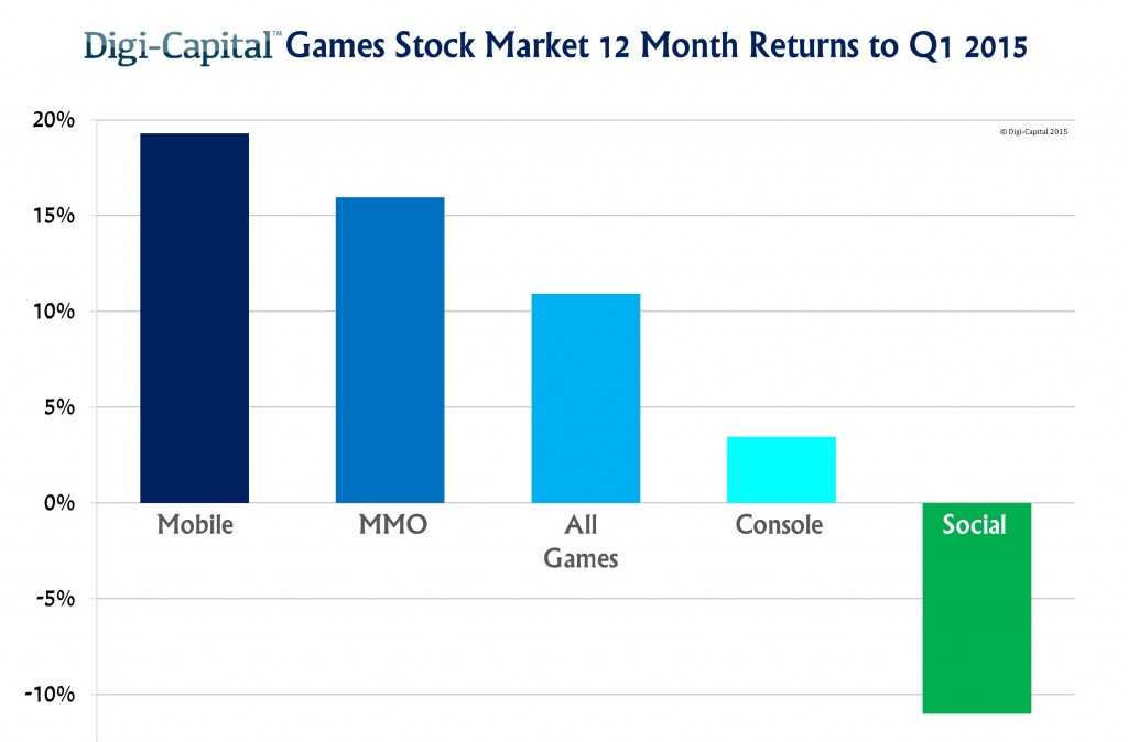 股市一直和游戏有千丝万缕的联系,游戏部类平均11%的投资回报来自股市。到2015年3月的12个月里,股市收益占手机游戏投资回报的19%,占MMO游戏(大型多人网游)的16%。