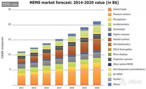 新兴MEMS传感器、成本显著降低、软件和新技术的重要性日益增加、行业巨头和中国代工厂的崛起:2020年全球MEMS产业将超过200亿美元!