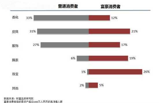 中国消费者在境外的文化消费品消费主要集中在皮具、腕表与珠宝。但是由于资产状况的不同,普通消费者更倾向于购买香化、皮具与服饰等初级文化消费品;而珠宝、腕表等顶级文化消费品则最受富裕阶层消费者青睐。有意思的是,由于国内外的价差,普通消费者境外购物时极爱多款皮具产品,特别是大牌的箱包;但是富裕阶层消费者也在国外购买皮具,但更偏爱限量或者定制版的皮具。