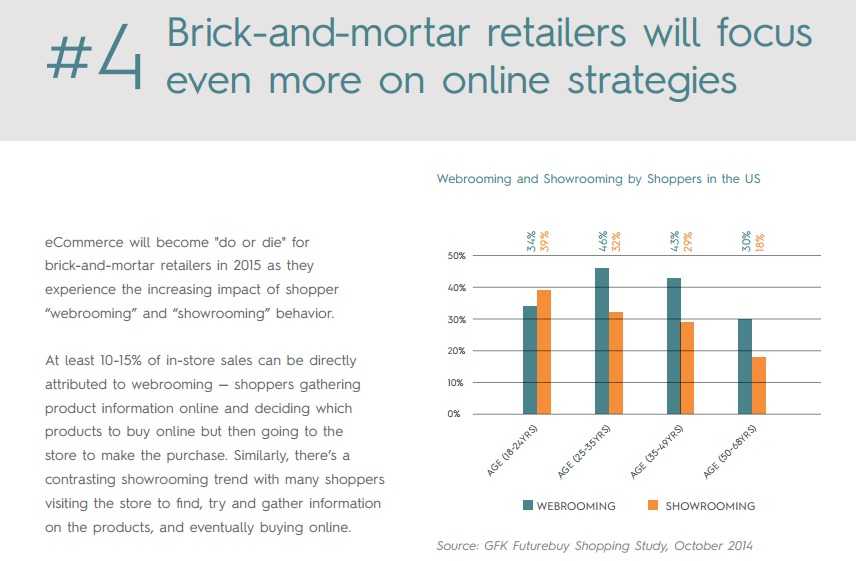 - 由于零售商预计反展厅现象(先在线对比产品信息再到实体店购买)和展厅现象(先到实体店体验再到线上购买)对销量产生的影响将与日俱增,线上销售对零售实体店来说势在必行。