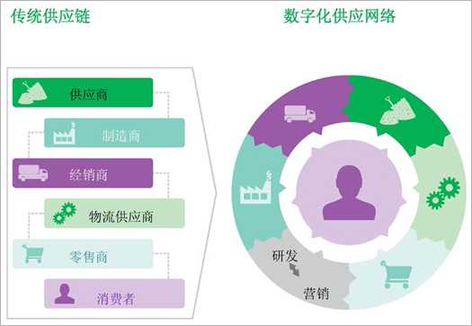 图1 线性供应链正在向环状数字供应网络转变,从而让运营流程更灵活