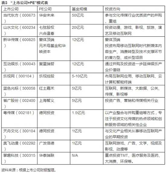 自2011年硅谷天堂首创“上市公司+PE”模式,与大康牧业合作成立并购基金,开展产业并购后,2014年这一模式开始引入传媒业。