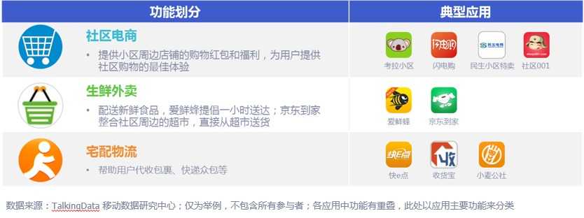 购物类社区O2O应用包括社区电商、生鲜外卖和宅配物流