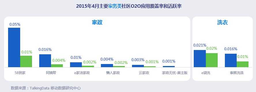 家务类社区O2O应用中覆盖率排名第一的是58到家