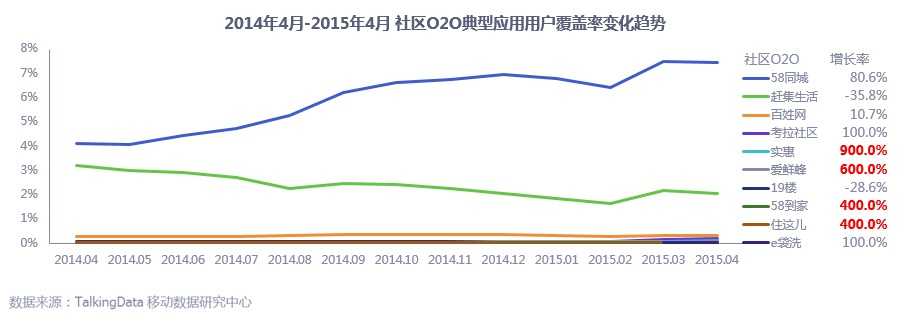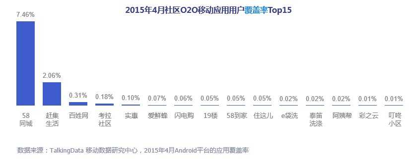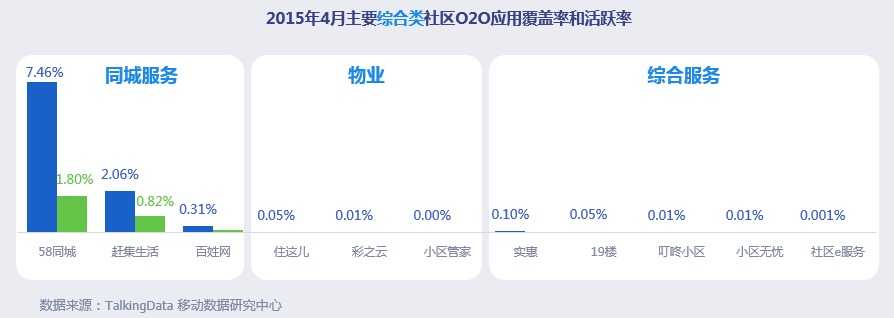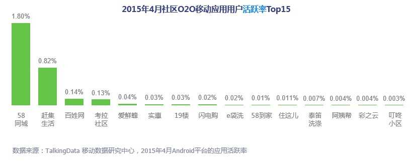 社区O2O移动应用覆盖率58同城居首位;其次是赶集生活