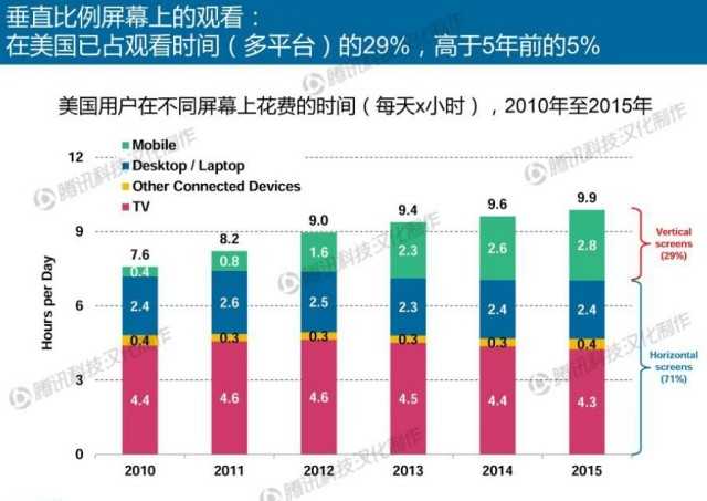 而在最新的《2015趋势报告》里,通过美国用户6年来在移动端上稳步增长的日均消费时长数据,玛丽米克尔为我们勾勒出接下来在移动端上视频消费所存在的巨大商业空间。
