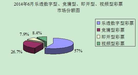 6月份,乐透数字型彩票销售205.7亿元[1],同比增加31.34亿元,增长18%;竞猜型彩票销售96.23亿元,同比增加76.36亿元,增长384.3%;即开型彩票销售28.42亿元,同比减少1.88亿元,下降6.2%;视频型彩票[2]销售30.18亿元,同比增加7.25亿元,增长31.6%。6月份乐透数字型、竞猜型、即开型和视频型彩票销售量分别占彩票销售总量的57%、26.7%、7.9%、8.4%。
