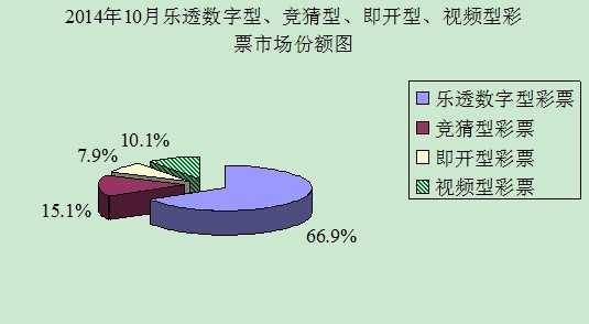 1月至10月累计,乐透数字型彩票销售2021.38亿元,同比增加298.99亿元,增长17.4%;竞猜型彩票销售506.32亿元,同比增加235.02亿元,增长86.6%;即开型彩票销售284.77亿元,同比减少2.23亿元,下降0.8%;视频型彩票销售308.60亿元,同比增加72.92亿元,增长30.9%。1-10月份乐透数字型、竞猜型、即开型和视频型彩票销售量分别占彩票销售总量的64.8%、16.2%、9.1%、9.9%。