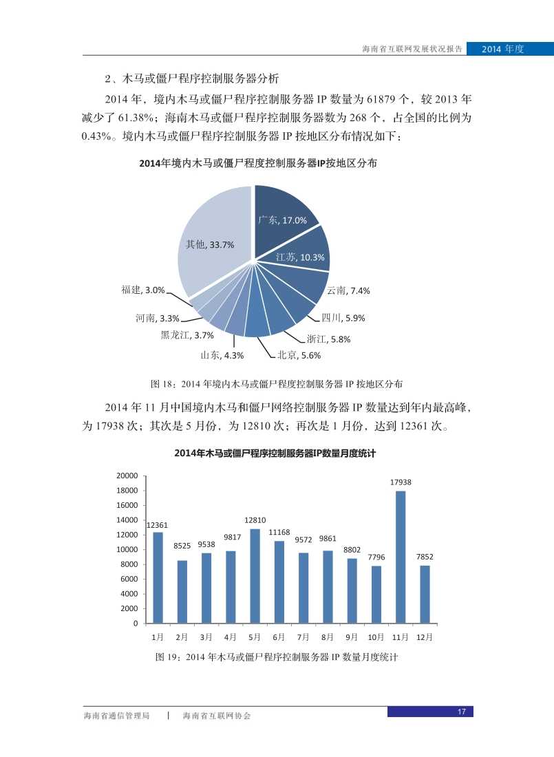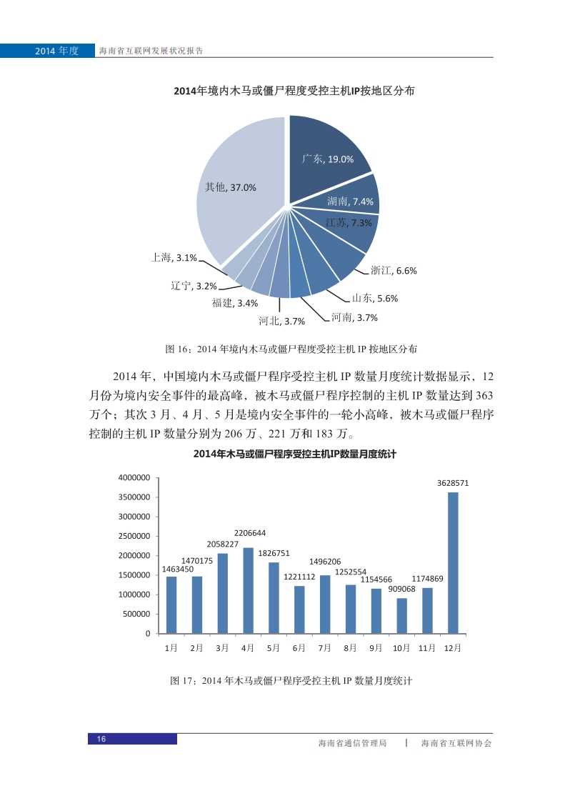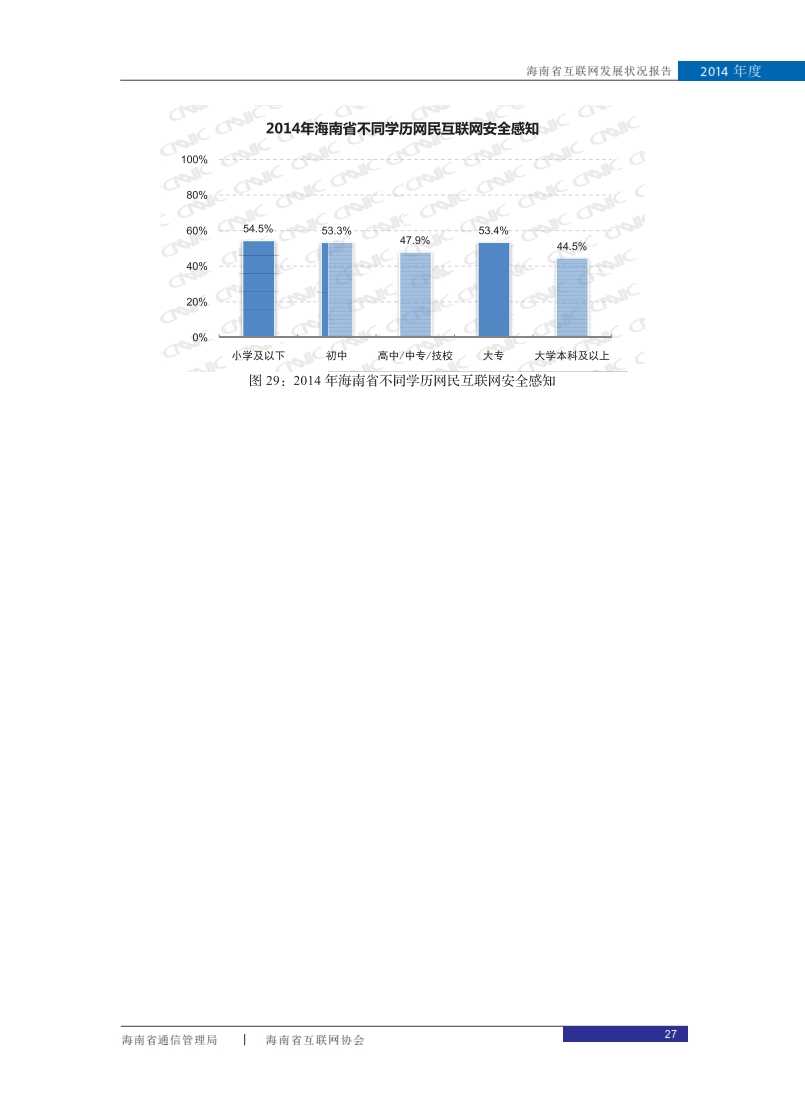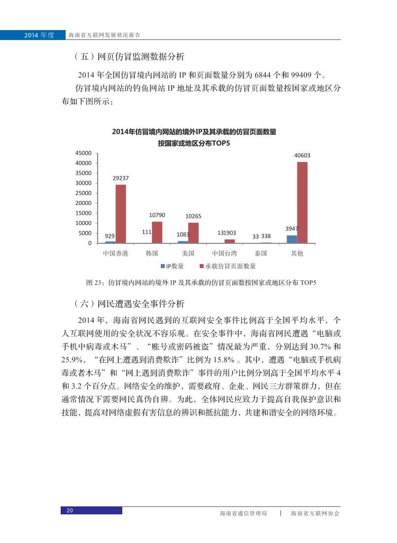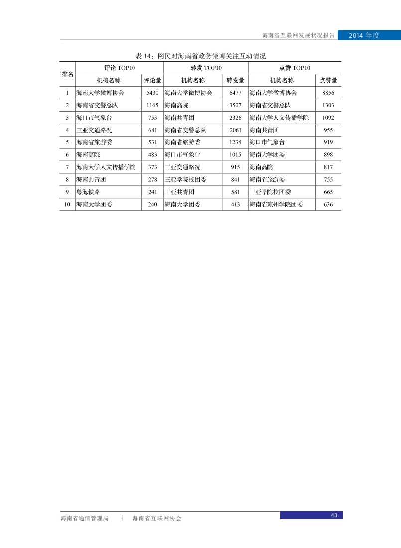2014年,海南省商务类互联网应用发展迅速,与2013年相比,各类商务类应用使用率增长幅度在3.5%-14%之间,而且除互联网理财外,均大幅领先于全国平均水平6个百分点以上。其中,网上支付使用率领先全国平均水平14.6个百分点,网上银行和网络购物使用率分别领先全国平均水平9.5和 8.9个百分点。互联网商务类应用的活跃极大的促进了海南省互联网的消费的增长,互联网经济的繁荣,有利于海南省经济结构的升级转型。