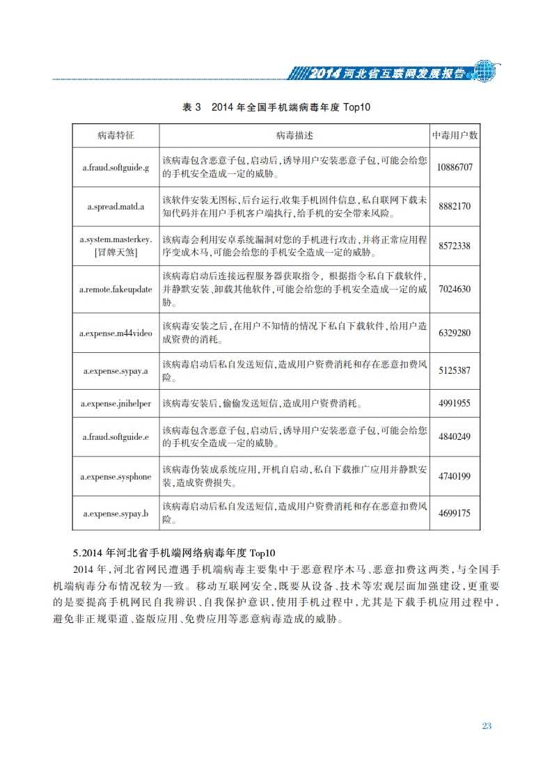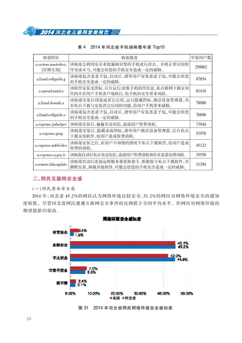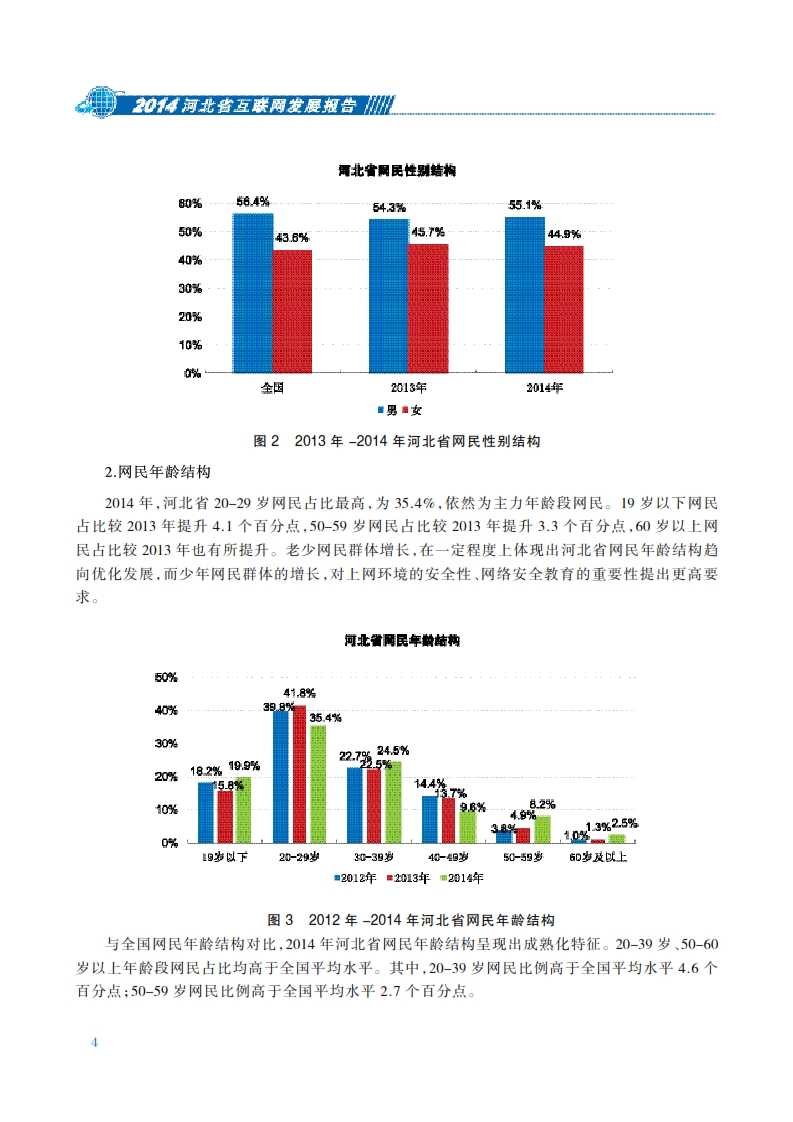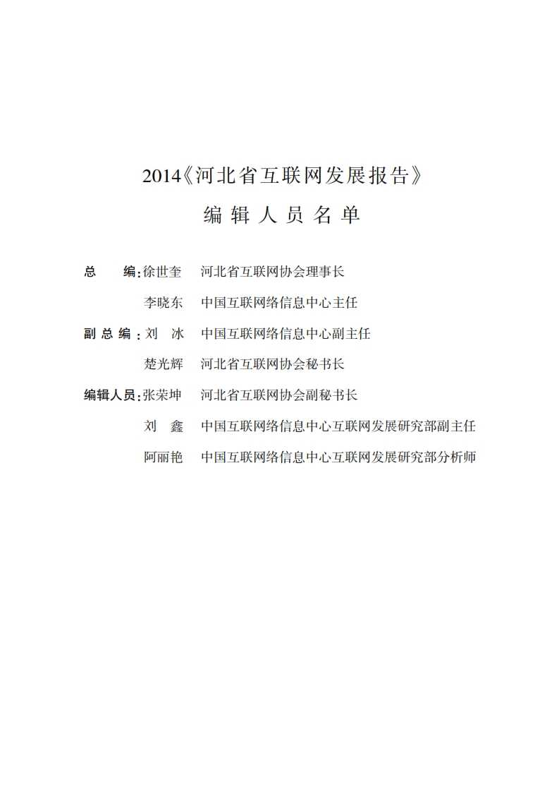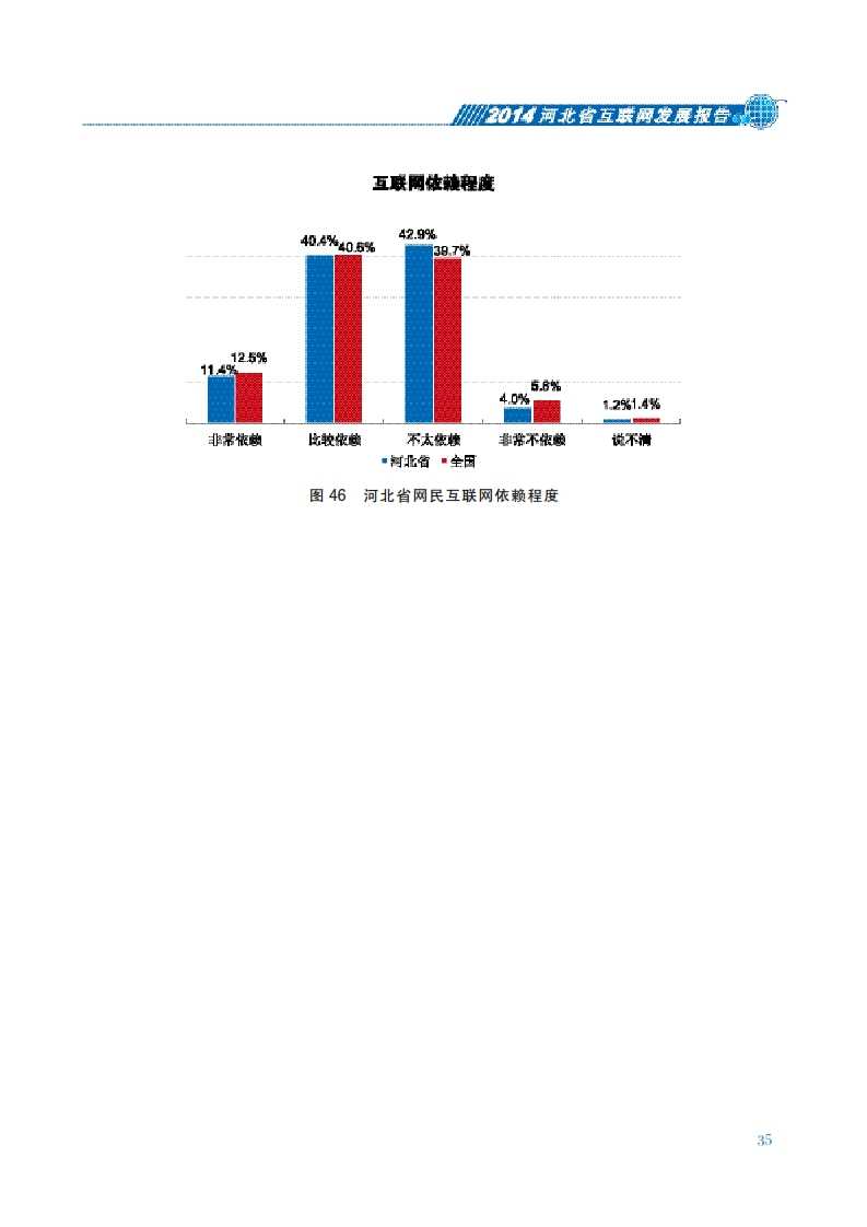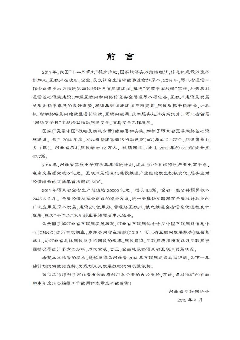 2014年,河北省各类互联网应用发展较为平稳,信息获取类、交流沟通类、商务交易类互联网应用的网民使用率增长较为明显,网络娱乐类互联网应用的使用率普遍下降,河北省网民互联网应用的使用目的更为明确,互联网应用习惯呈现出工具性为主的特征。