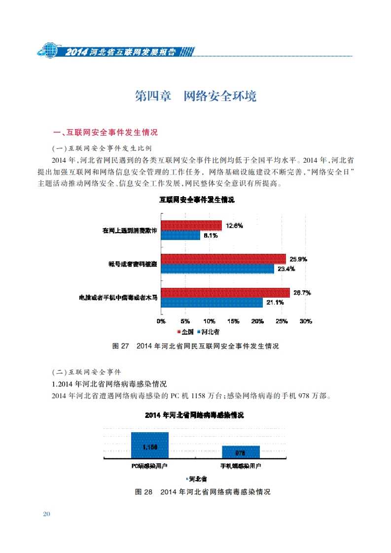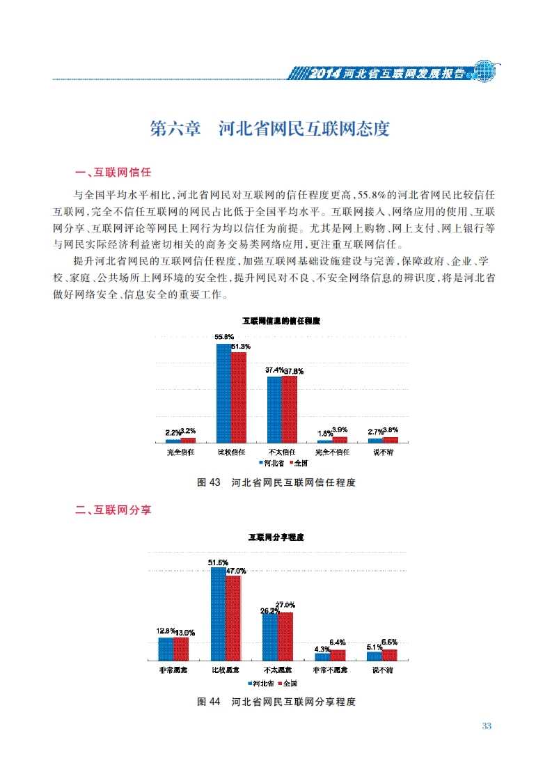 2014年,河北省网民使用电视上网比例为16.6%,高于全国平均水平1个百分点,河北省网民对新上网设备、上网方式的接受意愿较高。