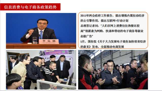 阿里研究院:2015年电子商务经济体2.0 电子商务已不仅是工具和渠道,而是经济体,这是一个不断进化、扩展的生态演进过程。 广义的电商经济体包括电商应用,电商服务(支撑、衍生服务)和相关基础设施制造。 预计到2020年,电子商务经济体规模将接近50万亿,为2012年的5.8倍。消费升级将引起电子商务经济体整体升级发生量变,进入2.0。 更多阅读:阿里研究院:2018年金砖国家电子商务发展报告阿里研究院:2014年阿里农产品电子商务白皮书国家邮政局:2025年中国快递年业务量突破1800亿件Think Howe:消费者对欺诈的态度和东南亚移动运营商的机会B2B电子商务采用指南:如何留住客户power Retail:2025年电子商务支付体验报告京东:2025年外卖覆盖企业超15000家,日订单2500万单国家邮政局:2024年快递业务量1750.8亿件,同比增长21.5%京东集团:2025年Q1总收入3011亿元,同比增长15.8%2019年-2024年中国市场与电子商务占商业风险投资比例(附原数据表) Rest of World:2025年3月小红书美国日活跃用户达80万 全球日活达610万人工智能与电子商务革命:人工智能如何塑造在线市场的未来Wunderkind:2025年英国电子商务消费者报告麦肯锡:2025年时尚报告Hampleton:2024下半年并购市场报告