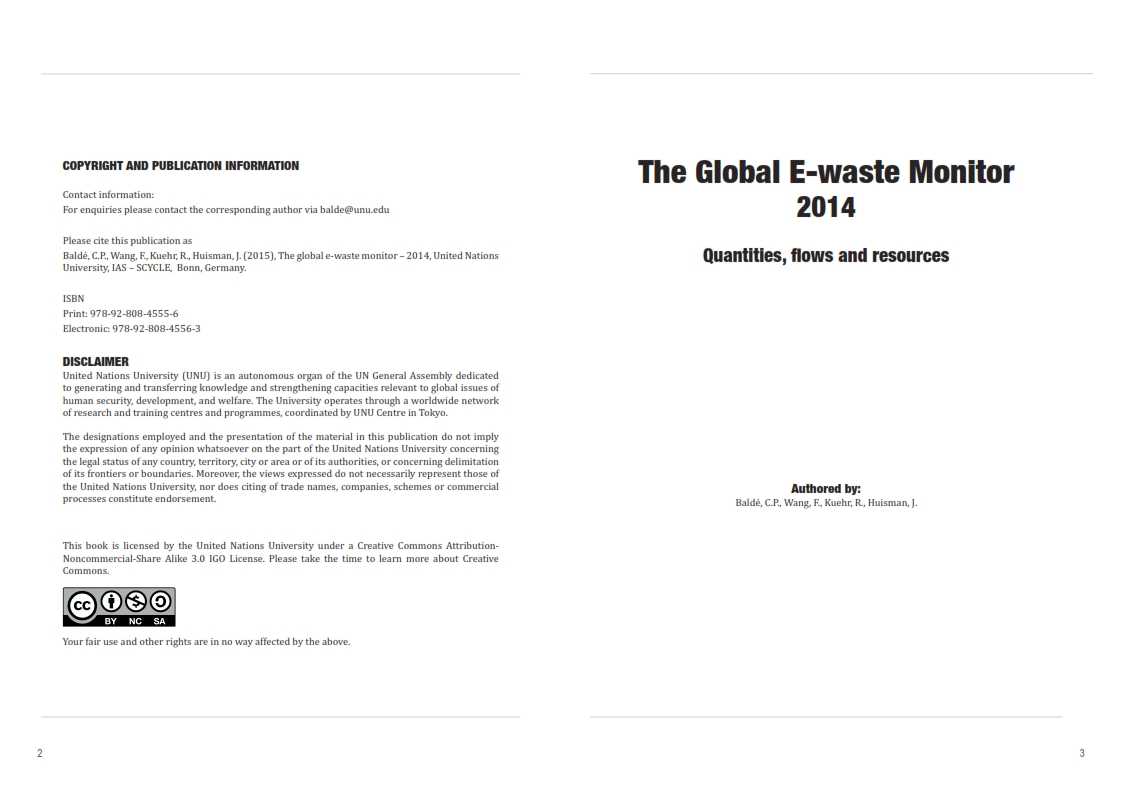 UNU:2014年全球电子废弃物监测报告(英文) 更多阅读:联合国:2020年全球电子废弃物监测报告国家药品监督管理局:2019年国家药品不良反应监测报告中国循环经济协会:2025年废旧手机闲置率60%,正规回收仅5%GBT:2020年酒店监测报告K-12报告:2017-2018全球数字学习现状TrendForce:预计2019年全球车用LED产值为31.7亿美元联合国:2019全球粮食危机报告世界经济论坛 :2018全球性别差距报告韦莱韬悦:2018年全球养老金资产研究报告TEFAF:2018全球艺术市场报告美世:2018年全球人才趋势研究报告OAG:2018年全球航空准点率综合报告国际劳工组织:2017年全球青年就业趋势报告全球出轨排行榜:泰国排名第一联合国贸易和发展会议:2019年全球投资趋势监测报告