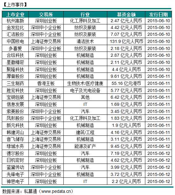 上市事件(06月08日-06月12日)