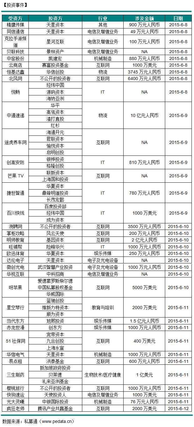 投资事件(06月08日-06月12日)