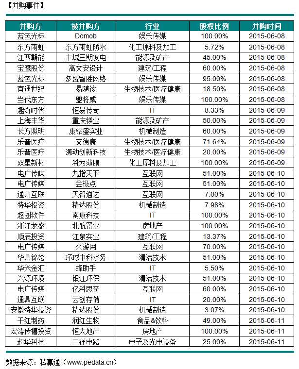 并购事件(06月08日-06月12日)