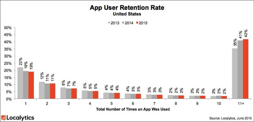 Localytics年度应用用户保留率报告关注两个指标: