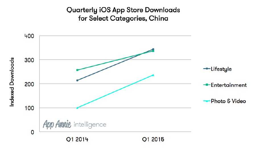 自2011年第一季度,中国成为iOS App Store第二大市场,仅次于美国。2015年第一季度中国iOS系统应用下载量比去年同期增长30%,使中国超过美国,成为iOS系统应用下载量最大的国家。