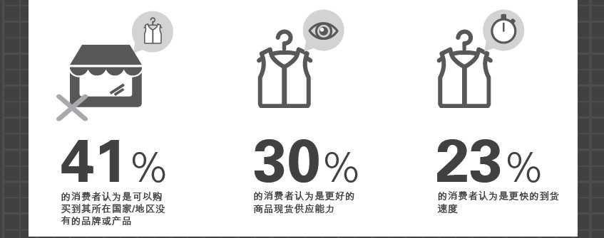 中国消费者被全球市场所吸引:62%的中国消费者有过从海外零售商采购商品的经历,但大多数消费者说产品的质量、价格、选择的多样性以及购物的便利性比零售商的地理位置更加重要。